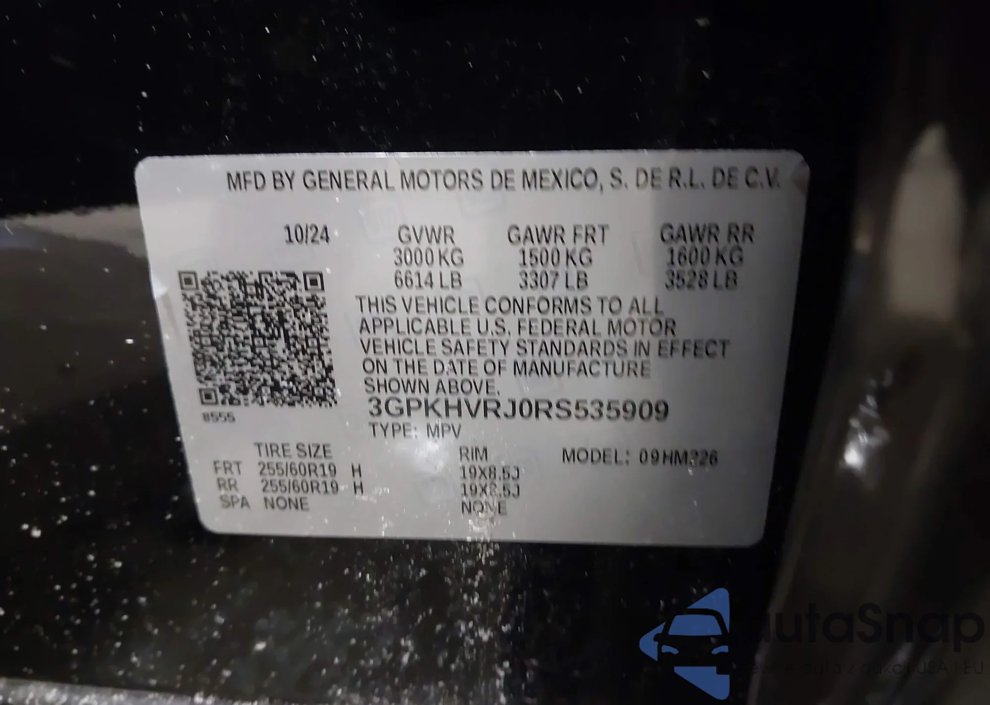 LOT: 44307487 VIN: 3GPKHVRJ0RS535909