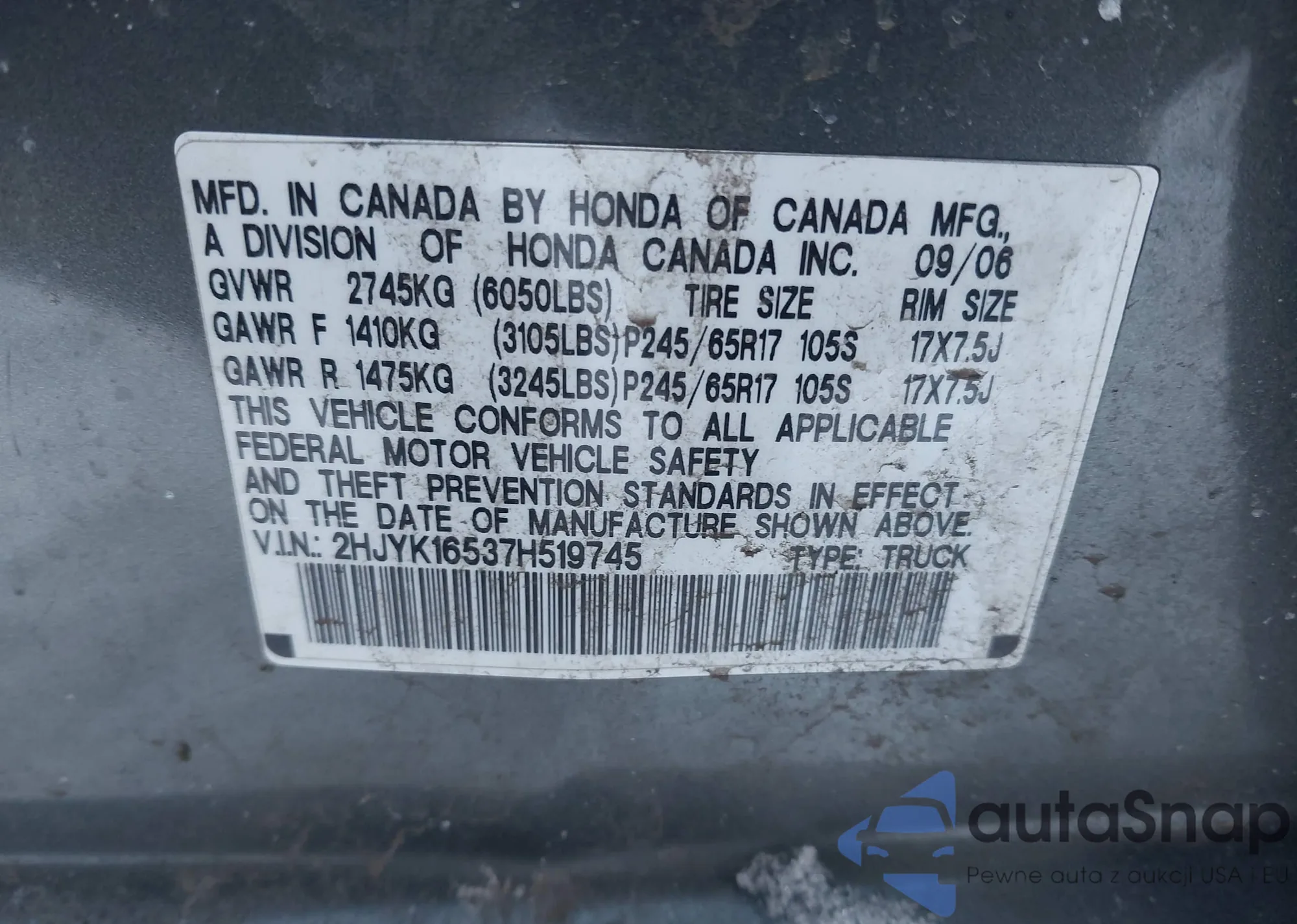 • VIN 2HJYK16537H519745