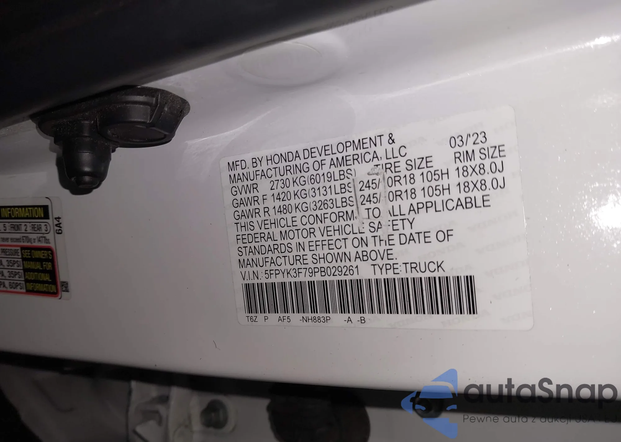 • VIN 5FPYK3F79PB029261
