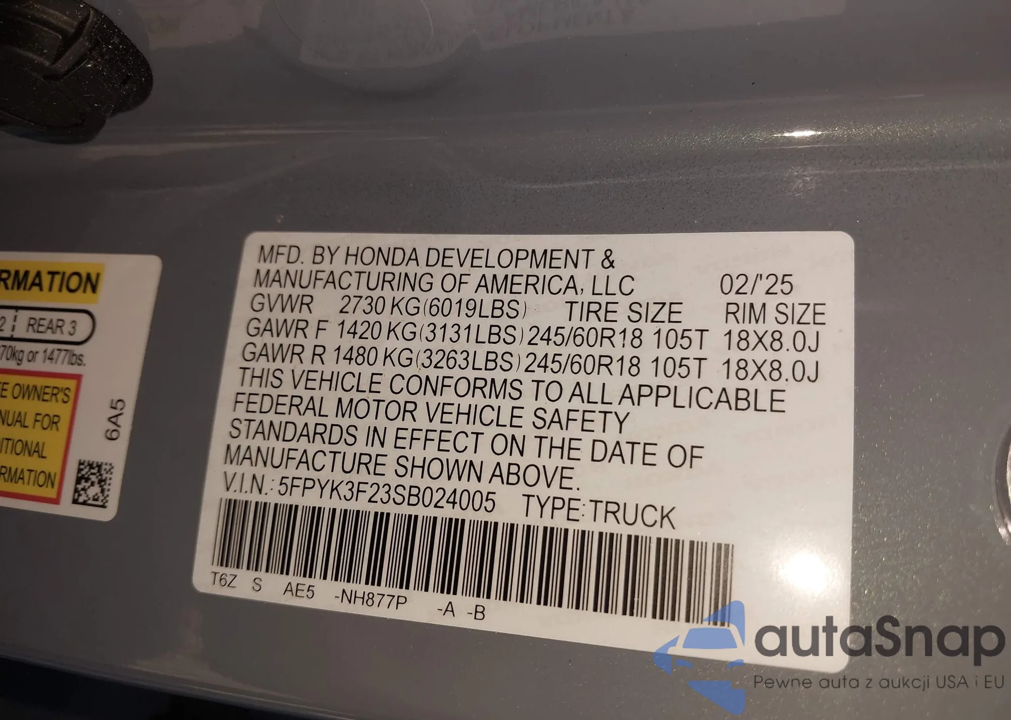 • VIN 5FPYK3F23SB024005