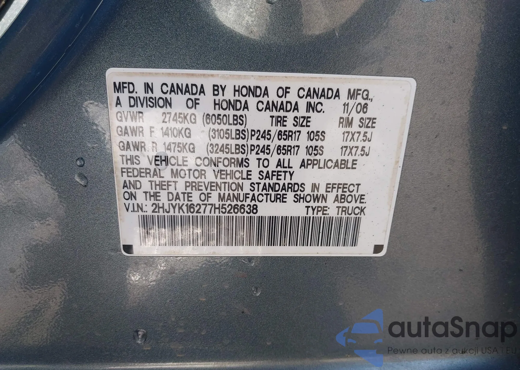 • VIN 2HJYK16277H526638