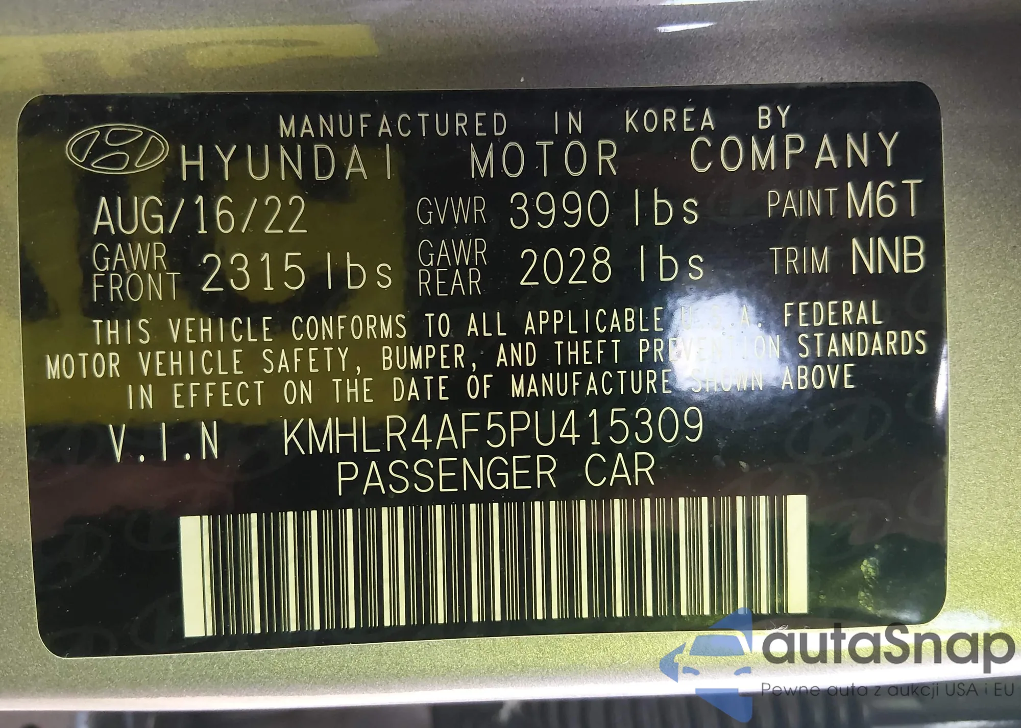 • VIN KMHLR4AF5PU415309