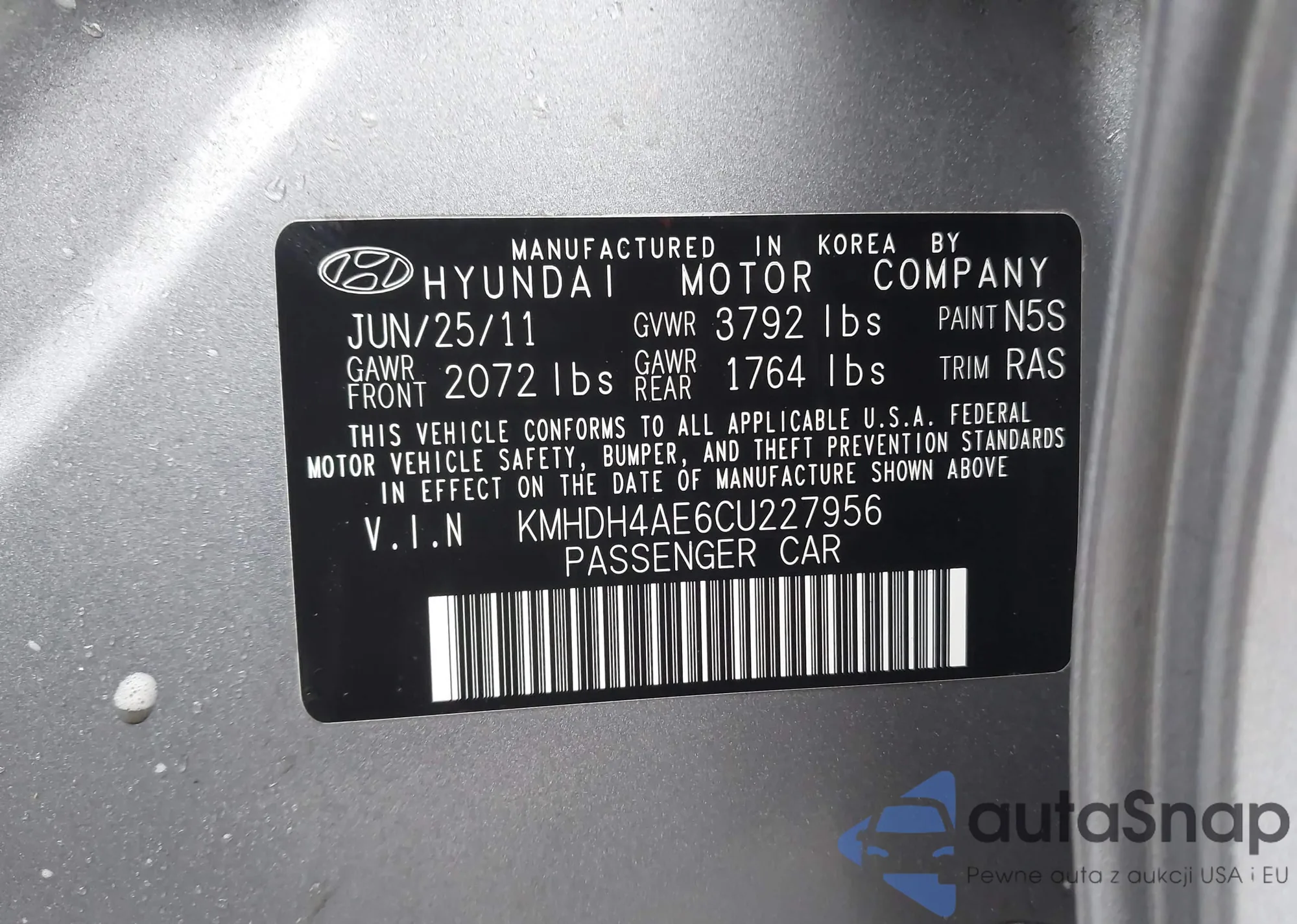 • VIN KMHDH4AE6CU227956
