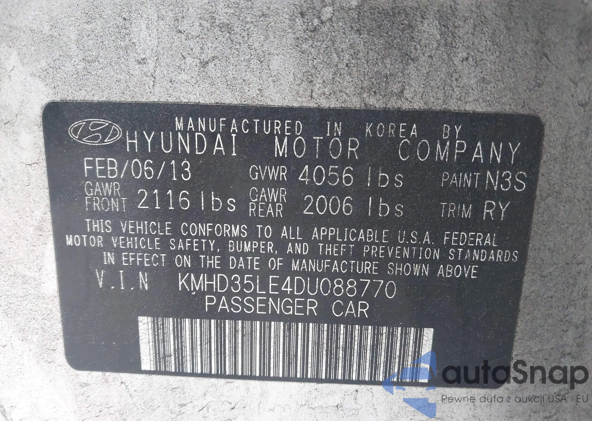 • VIN KMHD35LE4DU088770