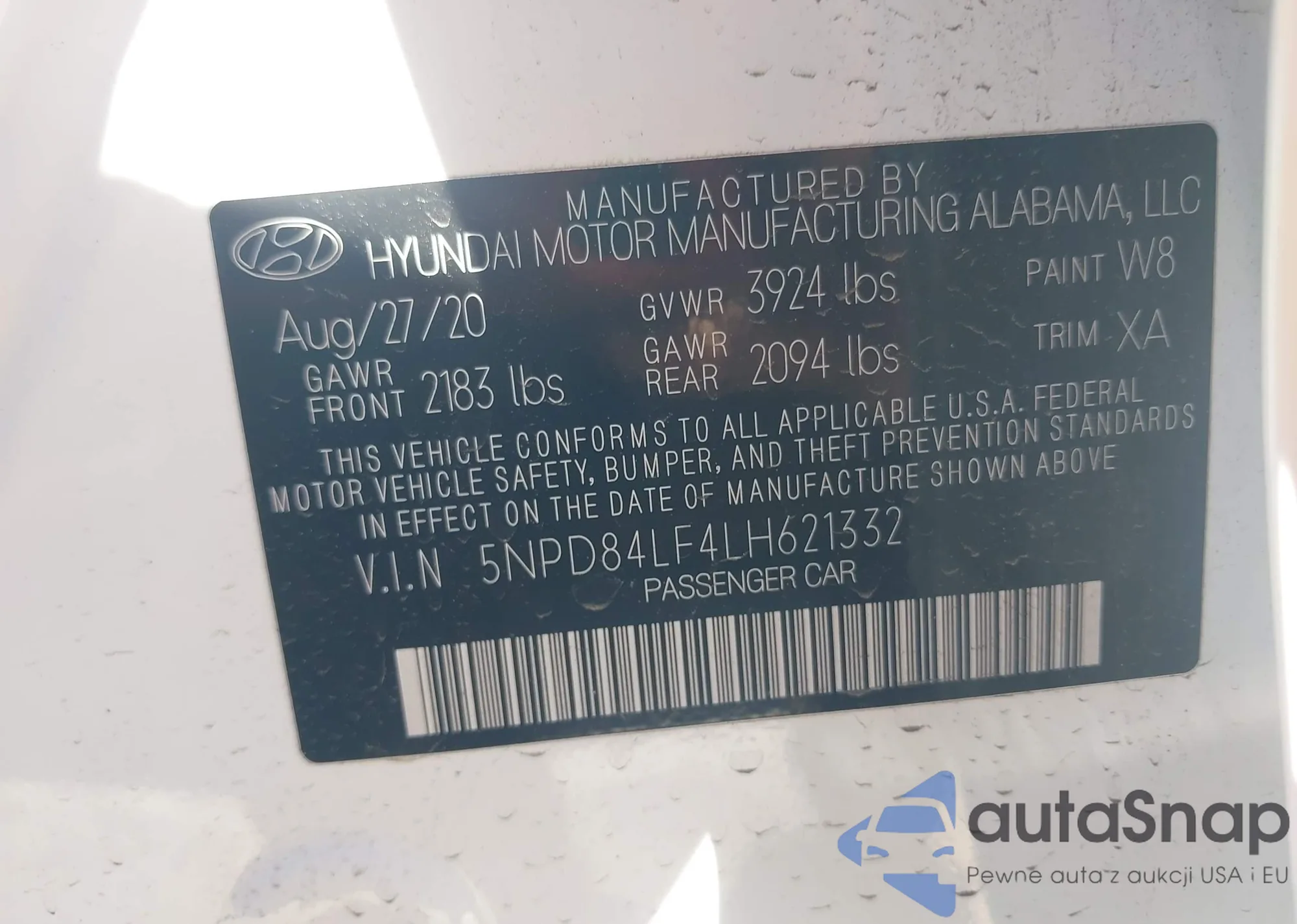 • VIN 5NPD84LF4LH621332