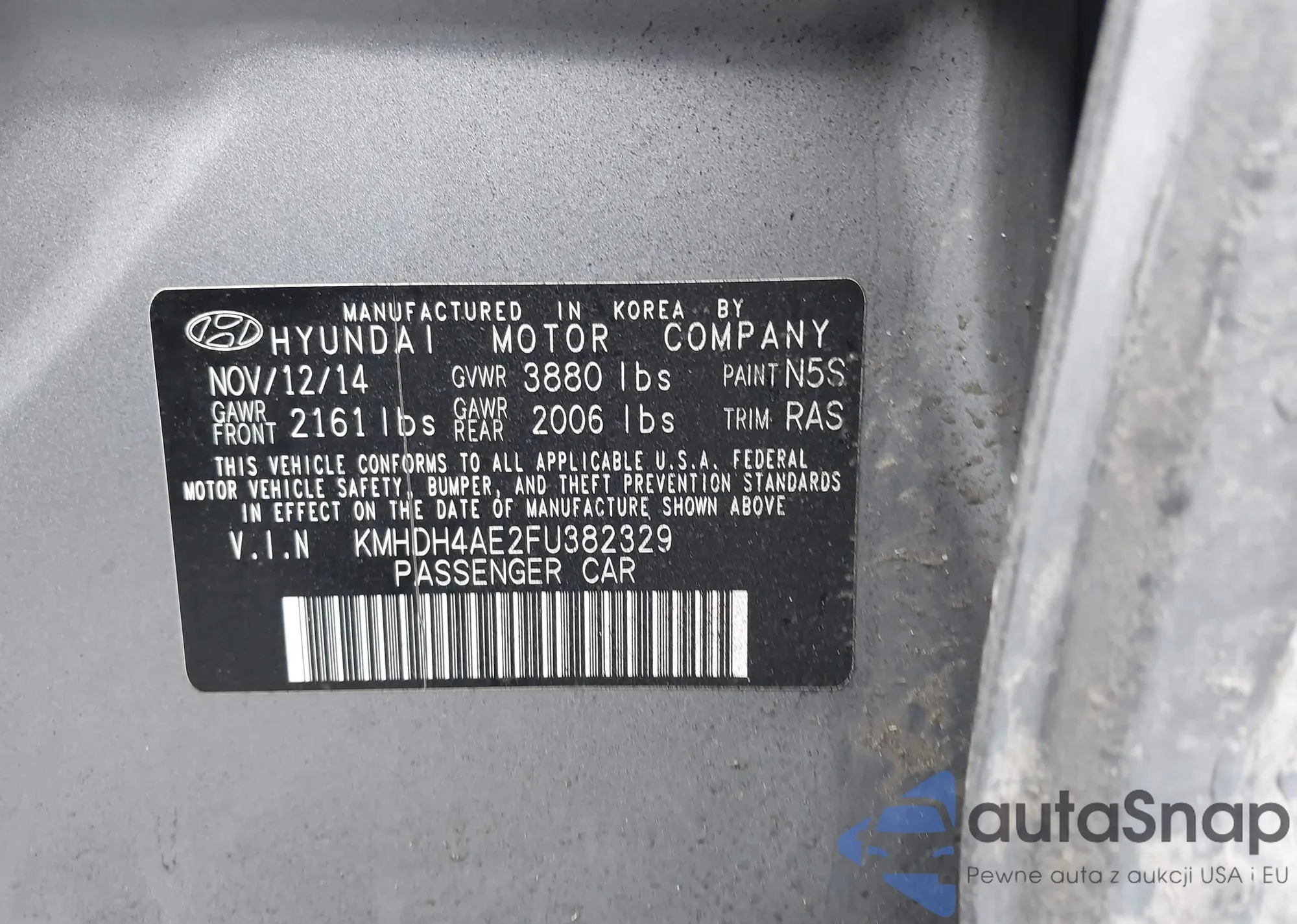 • VIN KMHDH4AE2F4382329