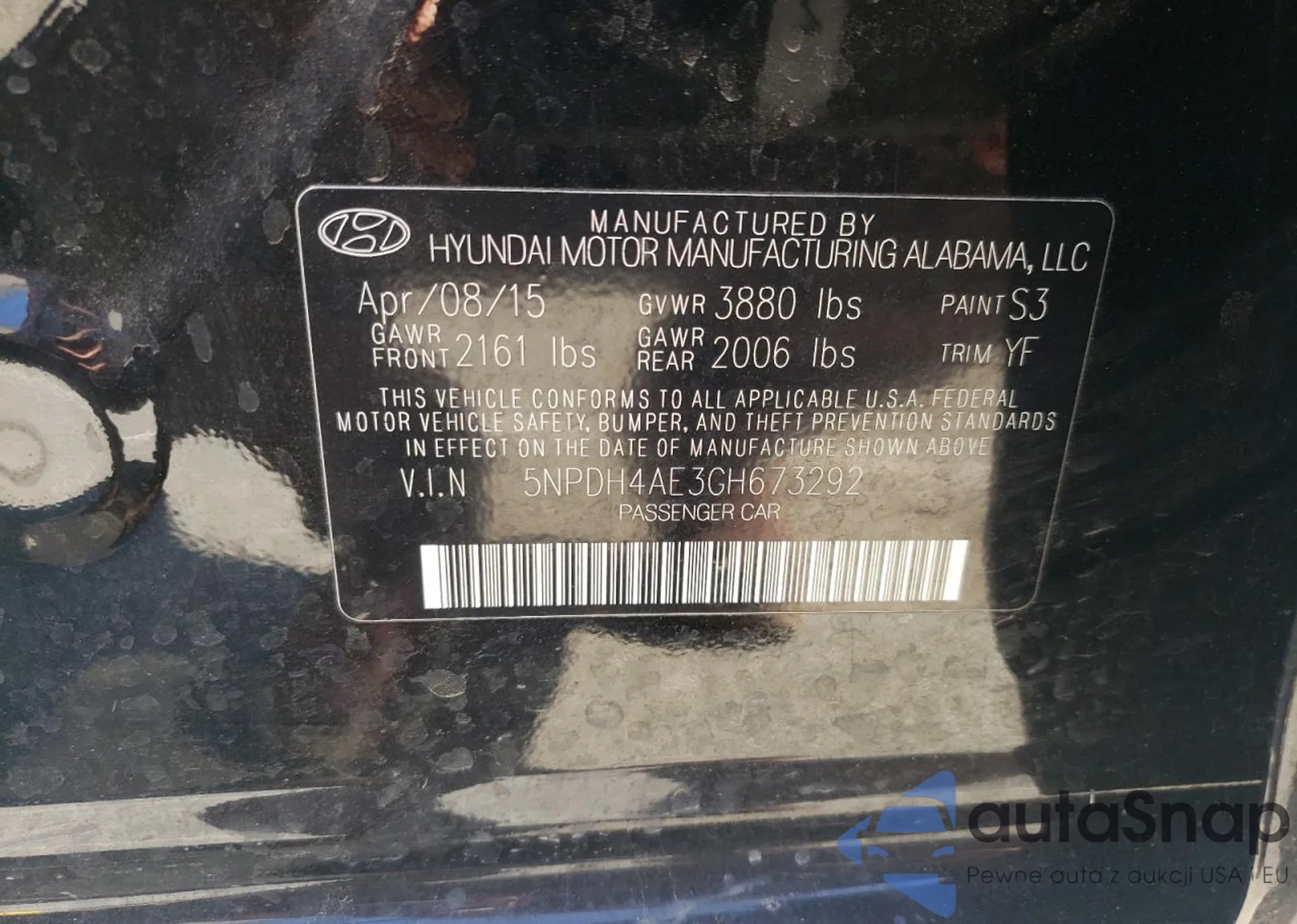 • VIN 5NPDH4AE3GH673292
