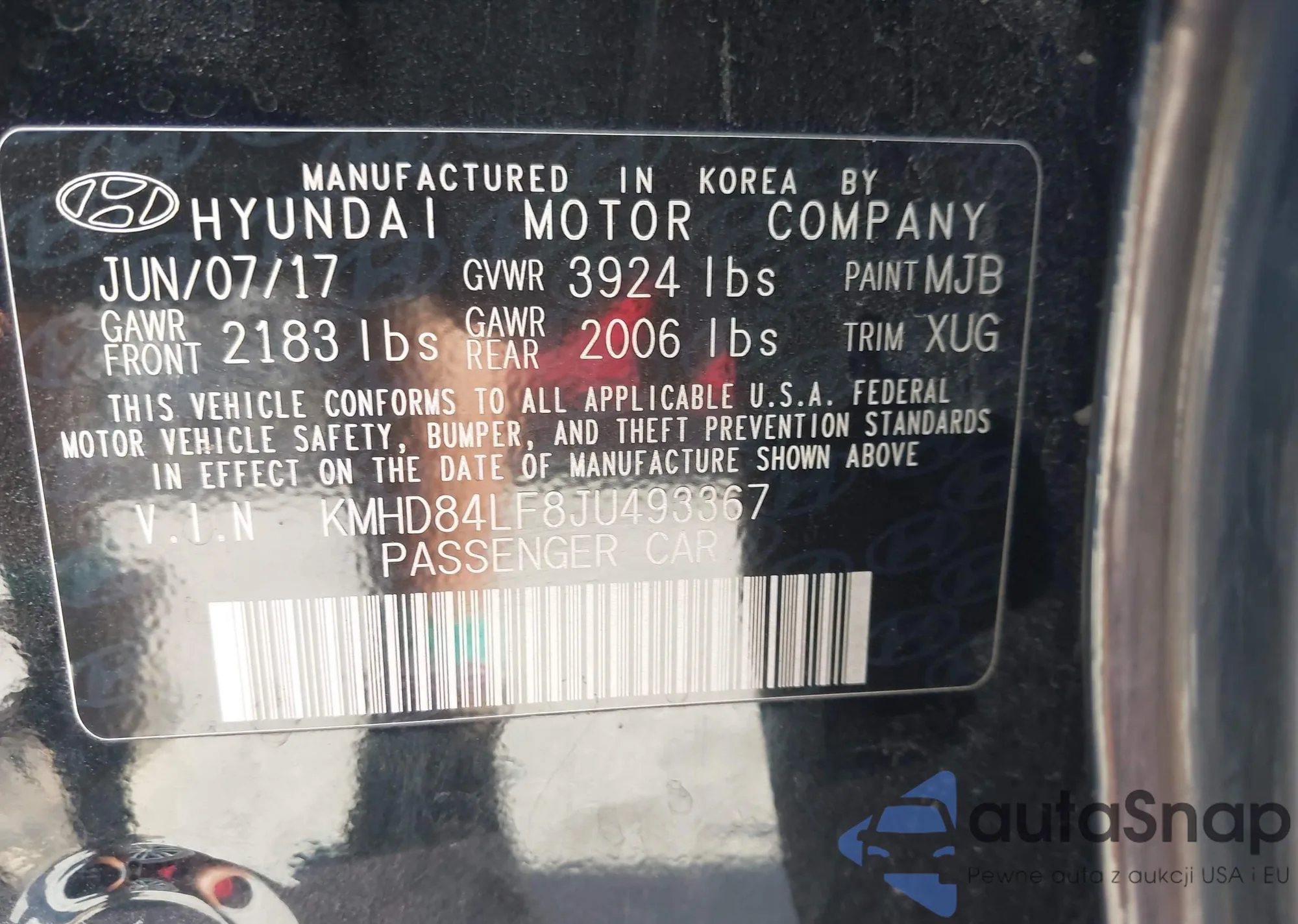 • VIN KMHD84LF8JU493367
