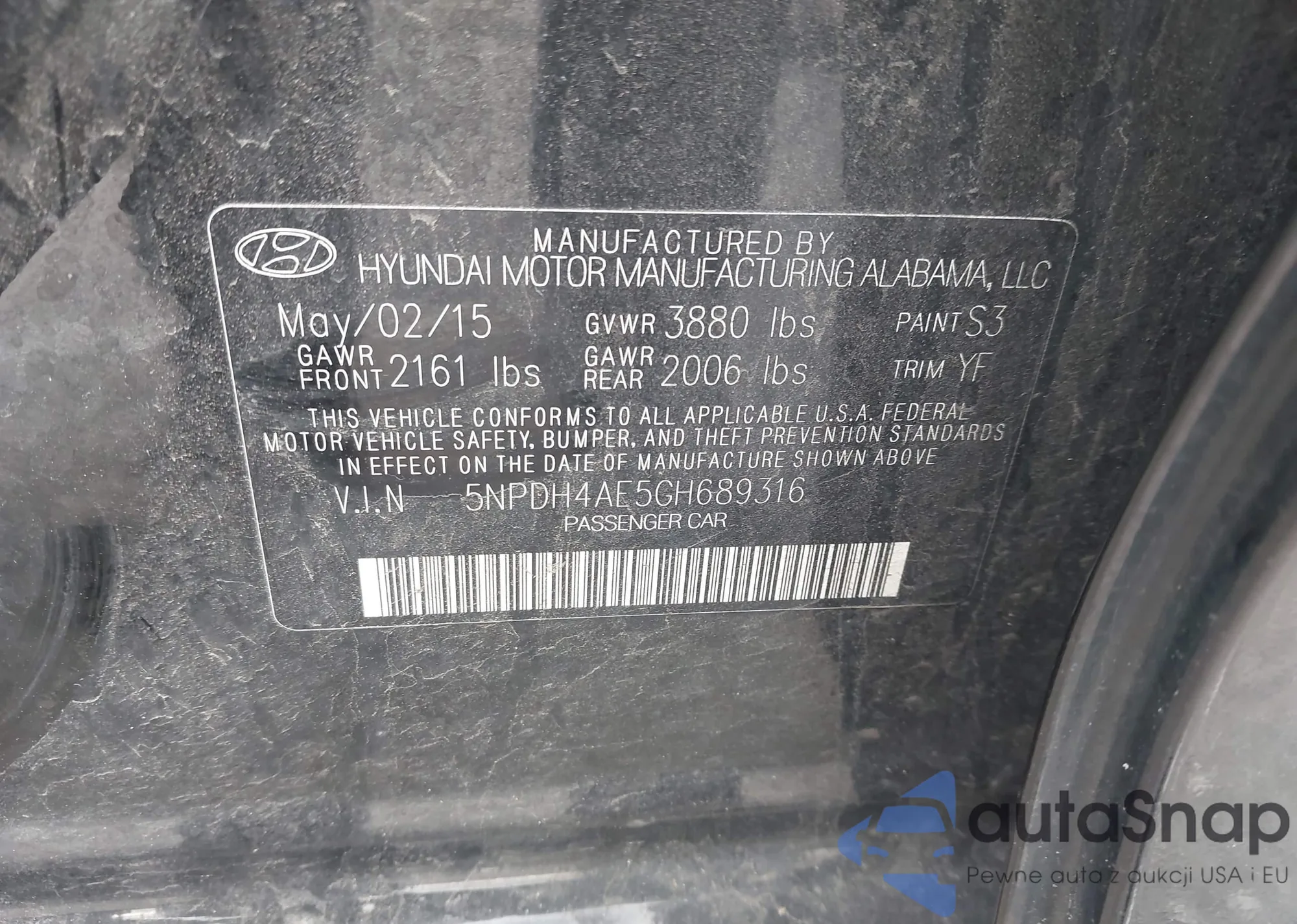 • VIN 5NPDH4AE5GH689316