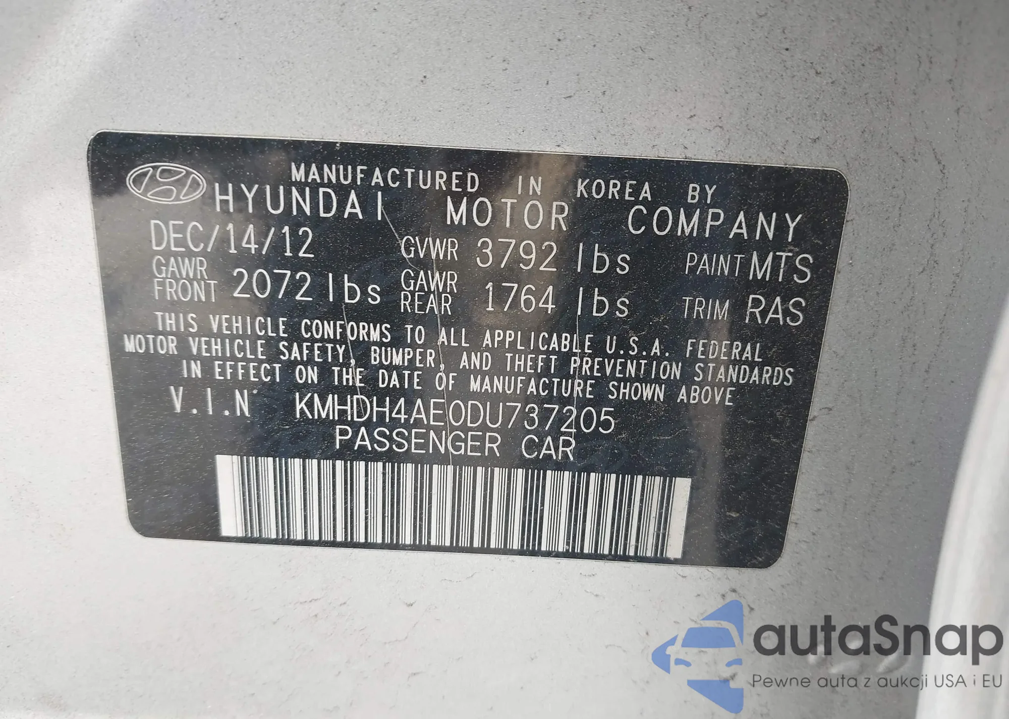 • VIN KMHDH4AE0DU737205