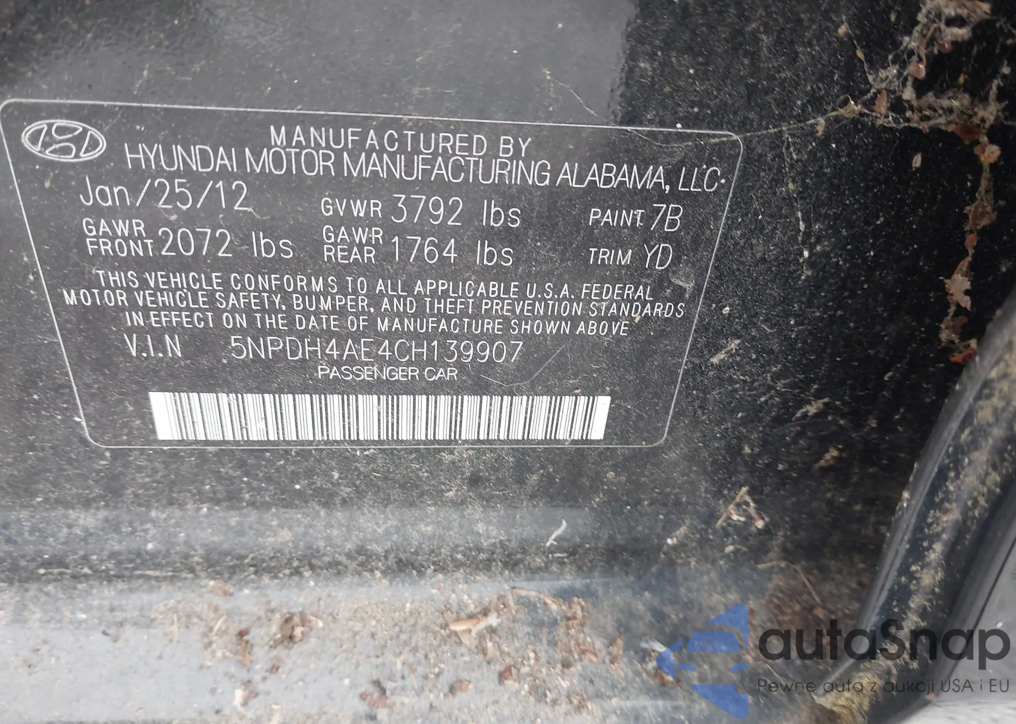 LOT: 42066275 VIN: 5NPDH4AE4CH139907