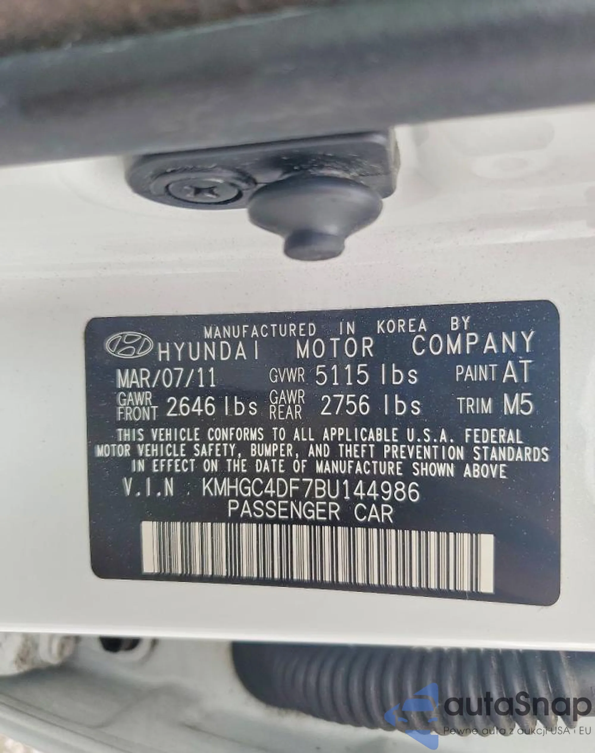 LOT: 74448625 VIN: KMHGC4DF7BU144986