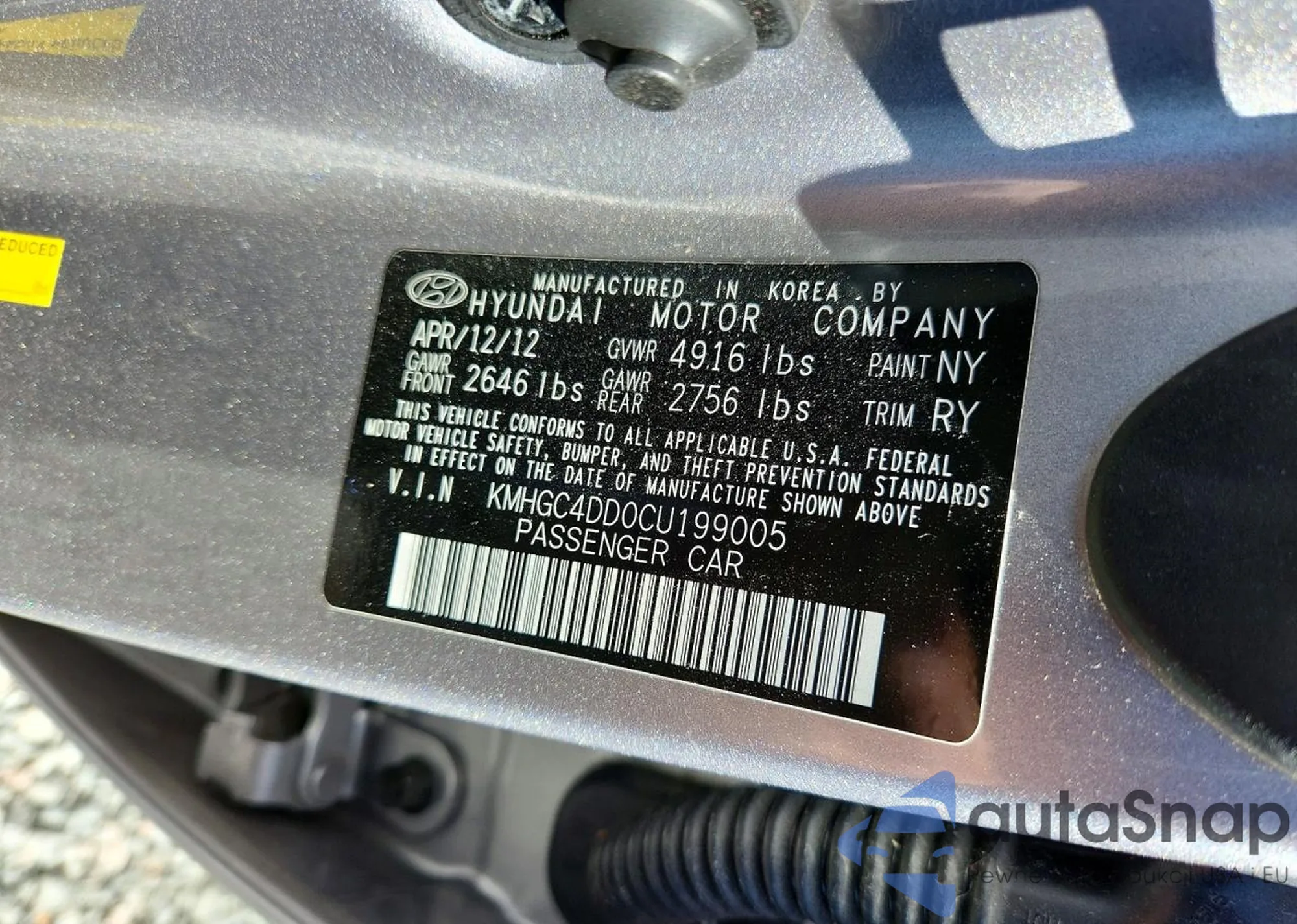 • VIN KMHGC4DD0CU199005