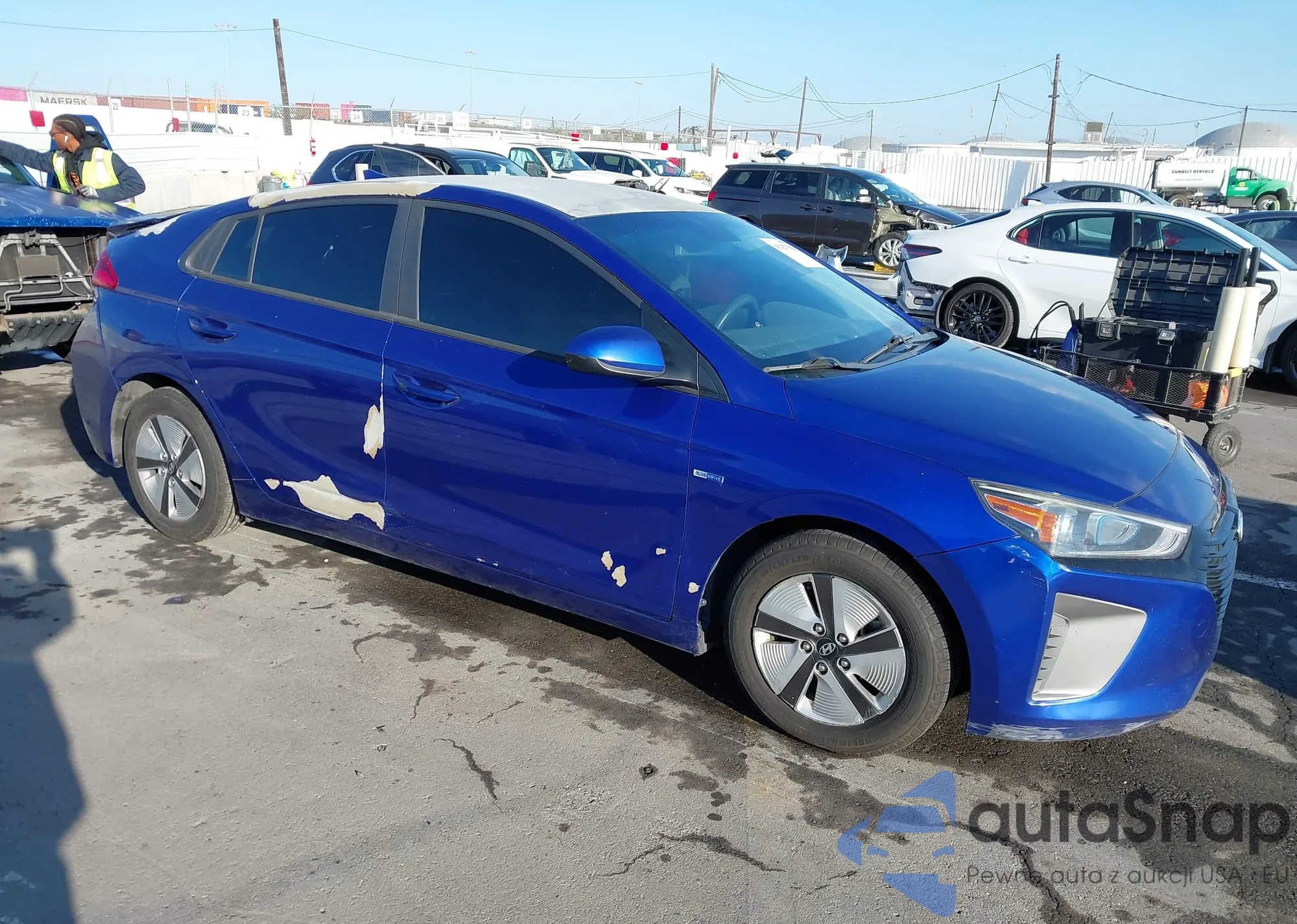 2018 Hyundai Ioniq Hybrid Blue from USA, damaged, VIN KMHC65LC9JU064235