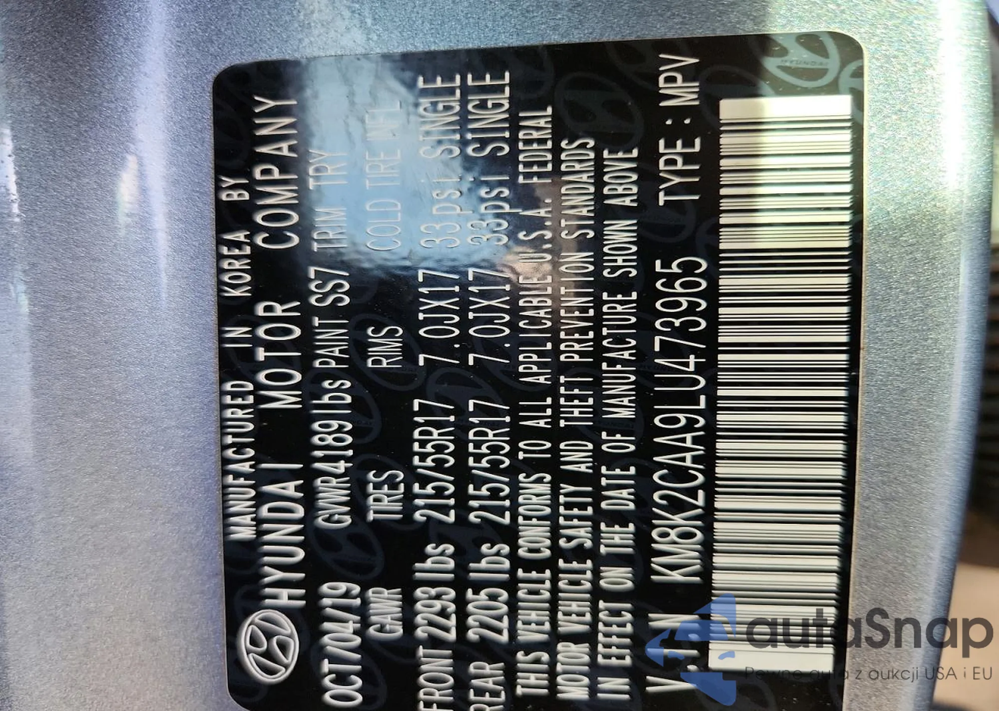 • VIN KM8K2CAA9LU473965