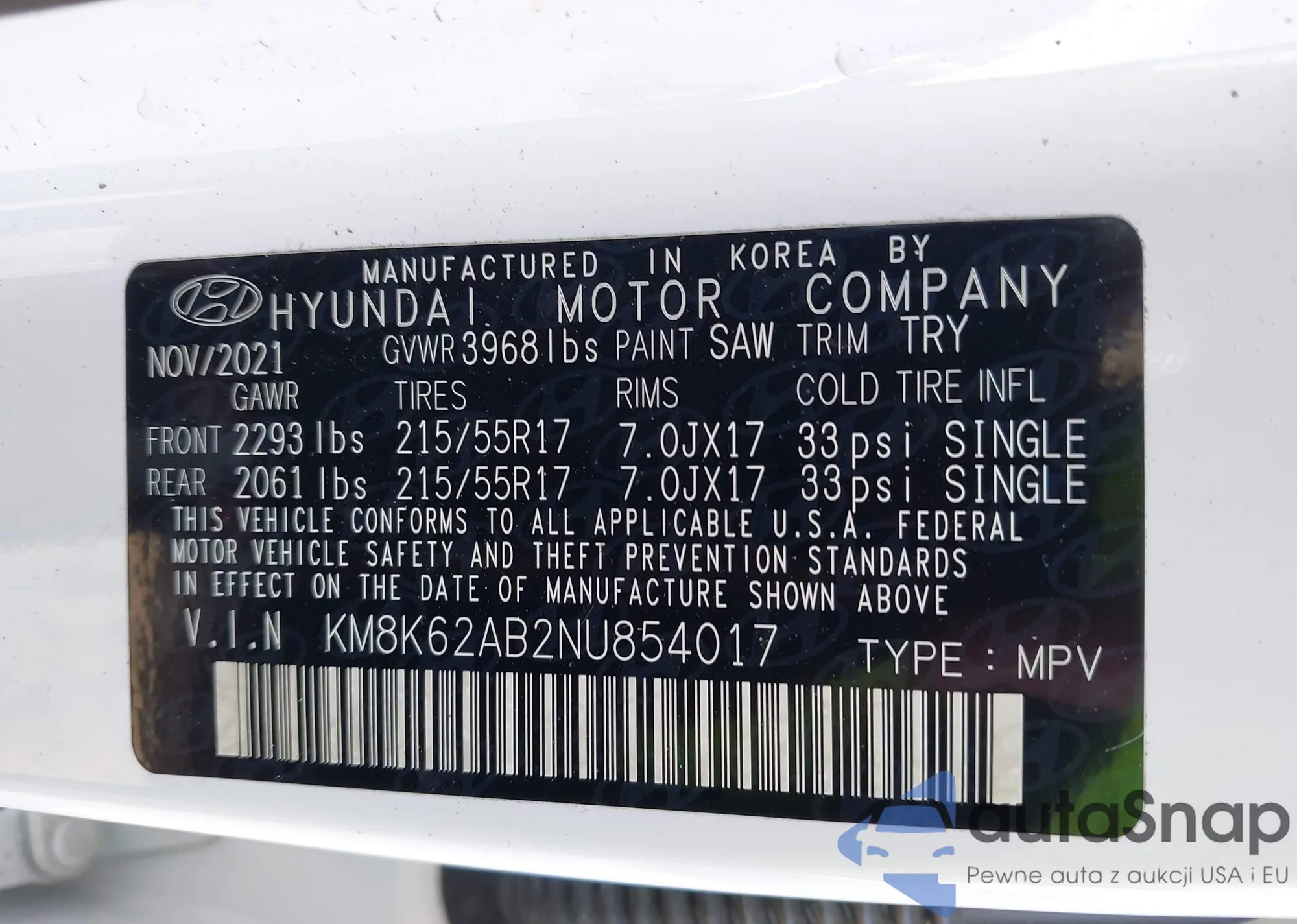 • VIN KM8K62AB2NU854017