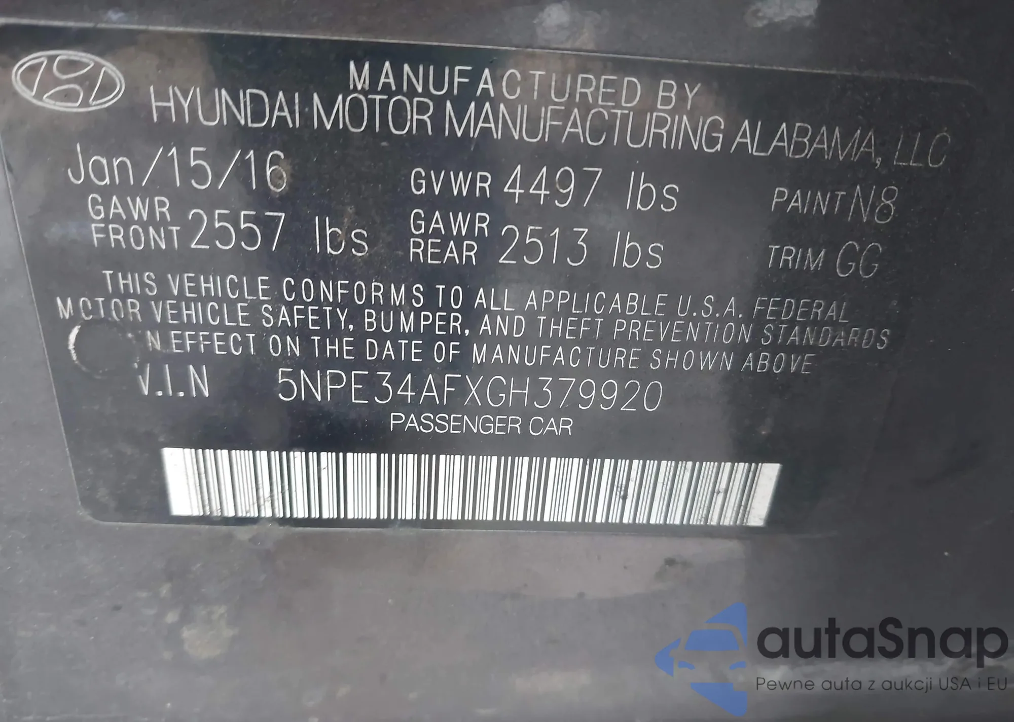 • VIN 5NPE34AFXGH379920
