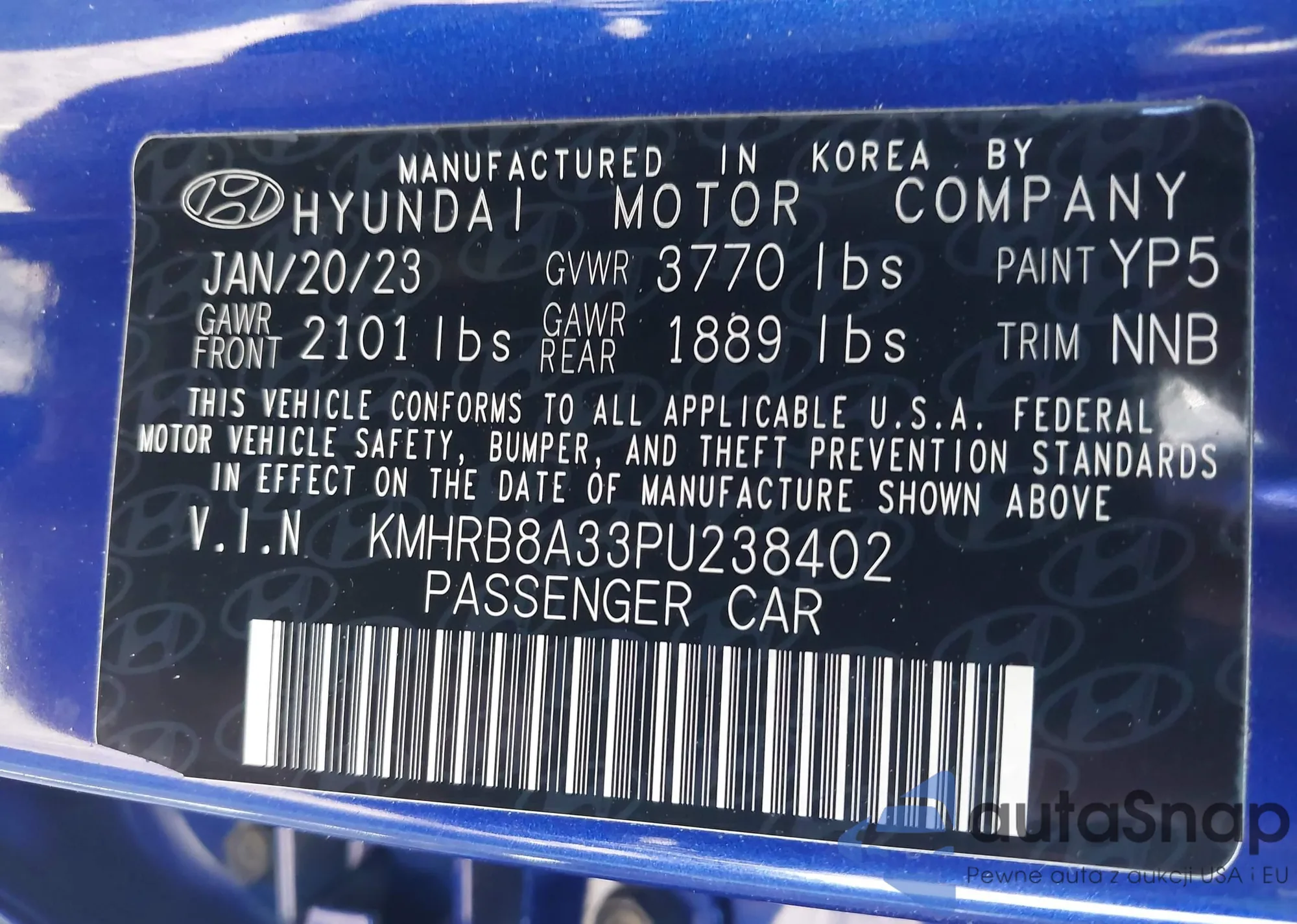 • VIN KMHRB8A33PU238402