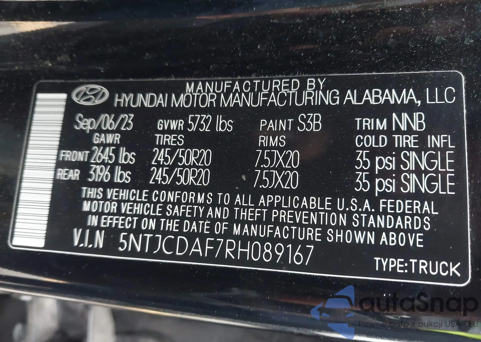 • VIN 5NTJCDAF7RH089167