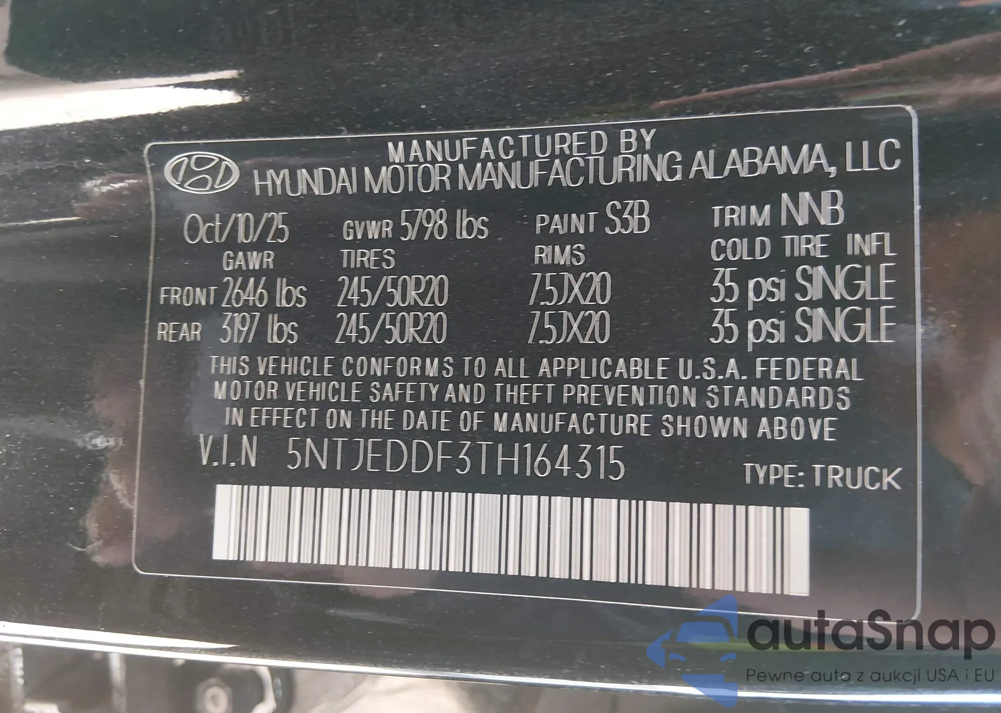 • VIN 5NTJEDDF3TH164315