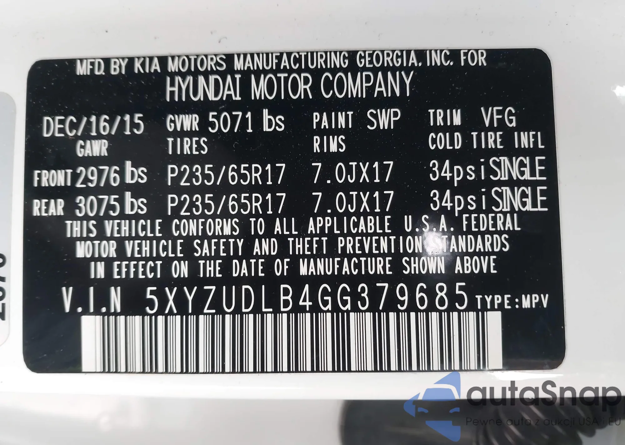 • VIN 5XYZUDLB4GG379685