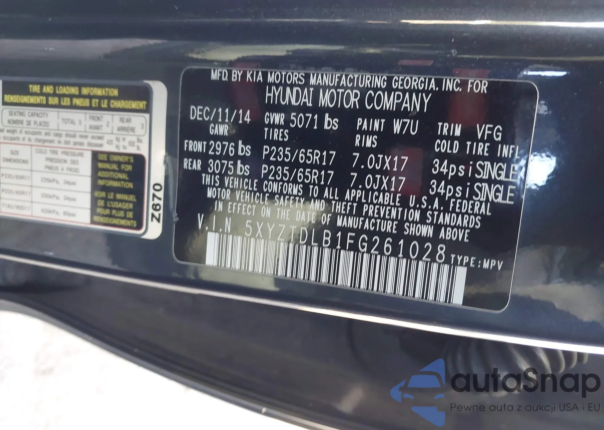 • VIN 5XYZWDLA7FG281475