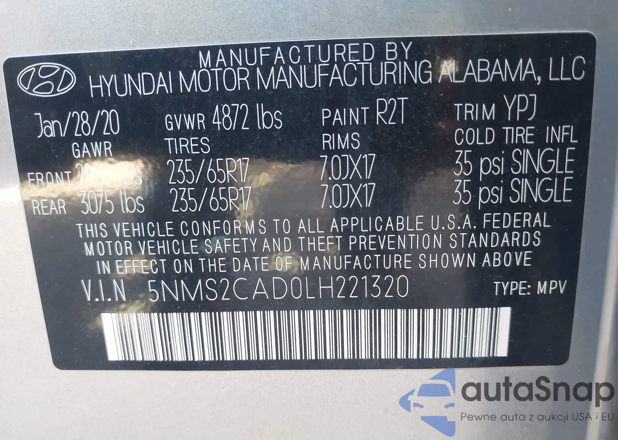• VIN 5NMS2CAD0LH221320