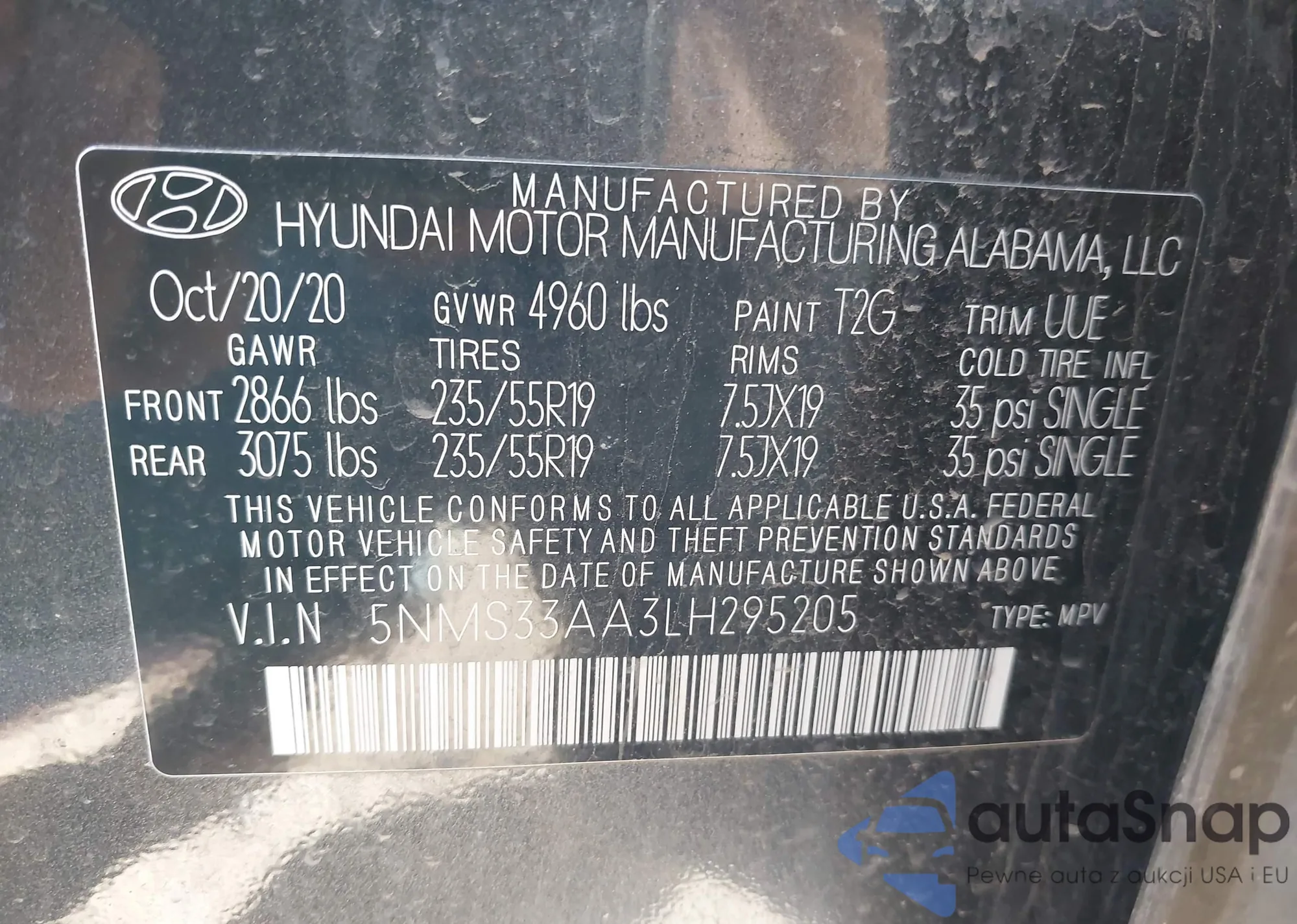 • VIN 5NMS33AA3LH295205