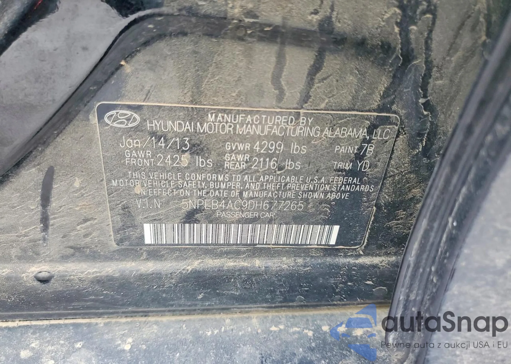 • VIN 5NPEB4AC9DH677265