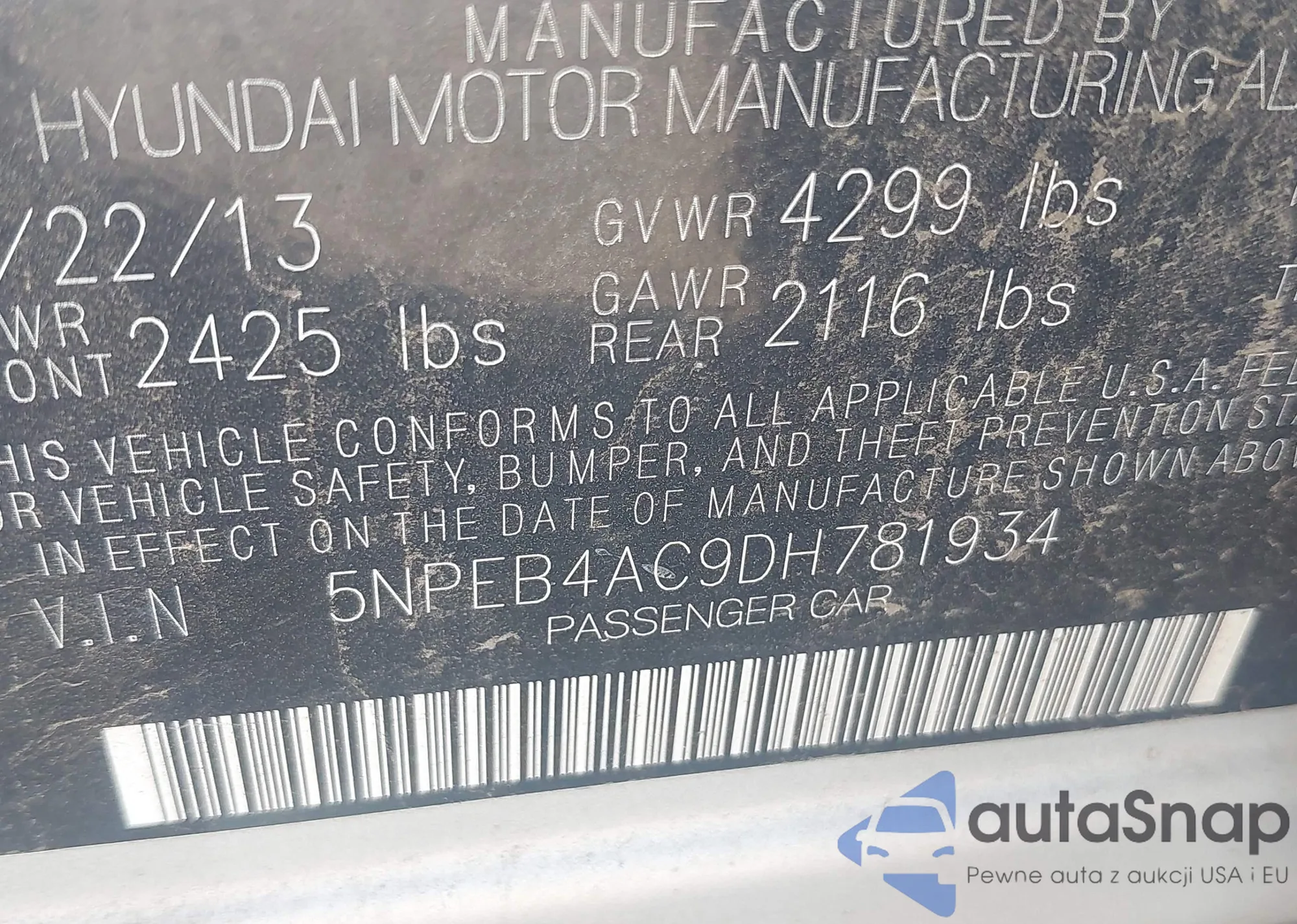 • VIN 5NPEB4AC9DH781934