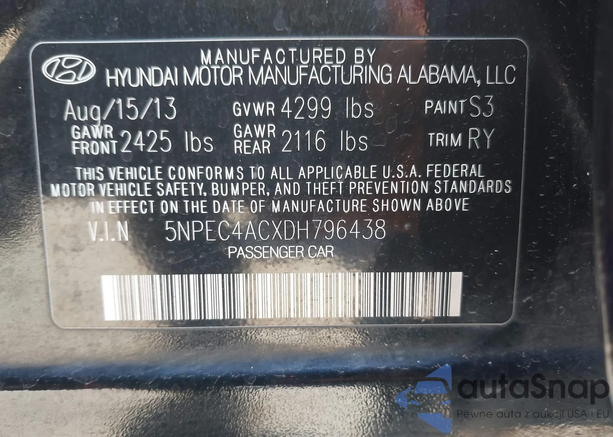 • VIN 5NPEC4ACXDH796438