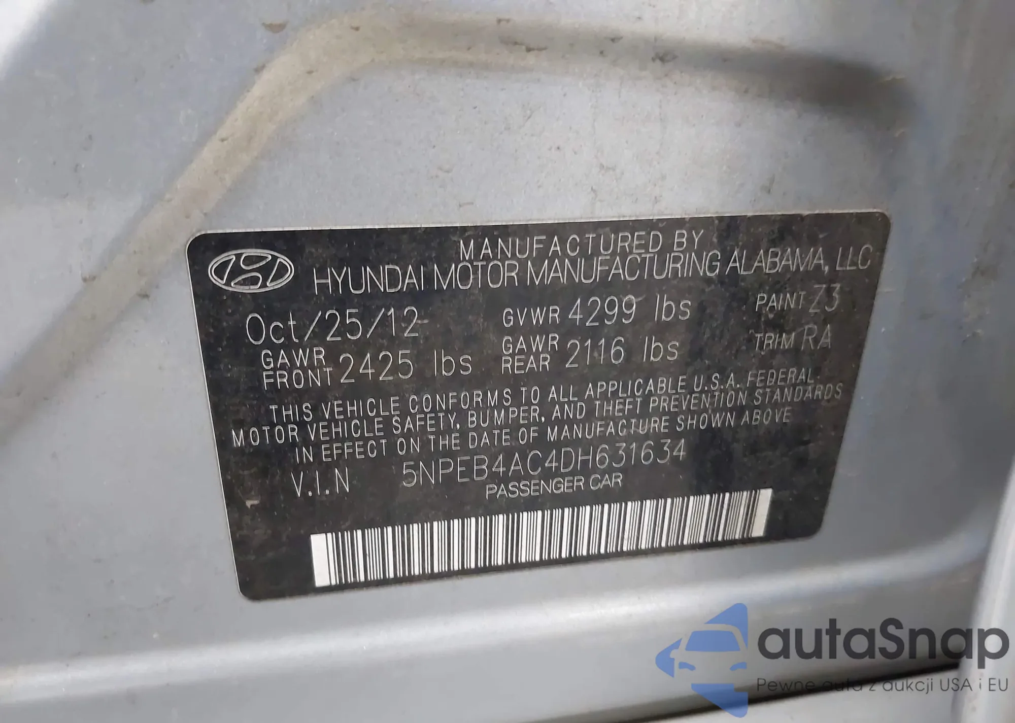 • VIN 5NPEB4AC4DH631634
