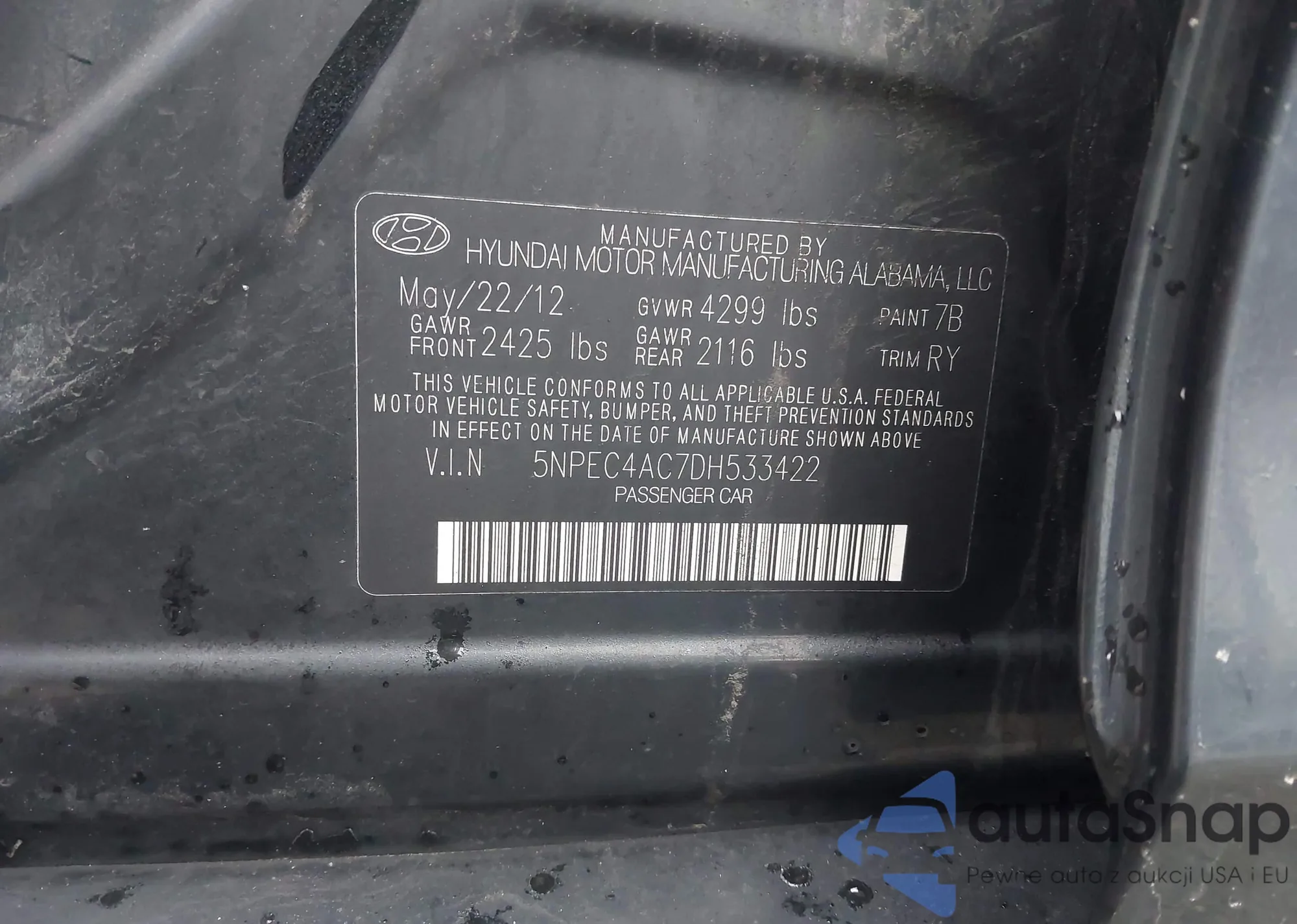 • VIN 5NPEC4AC7DH533422