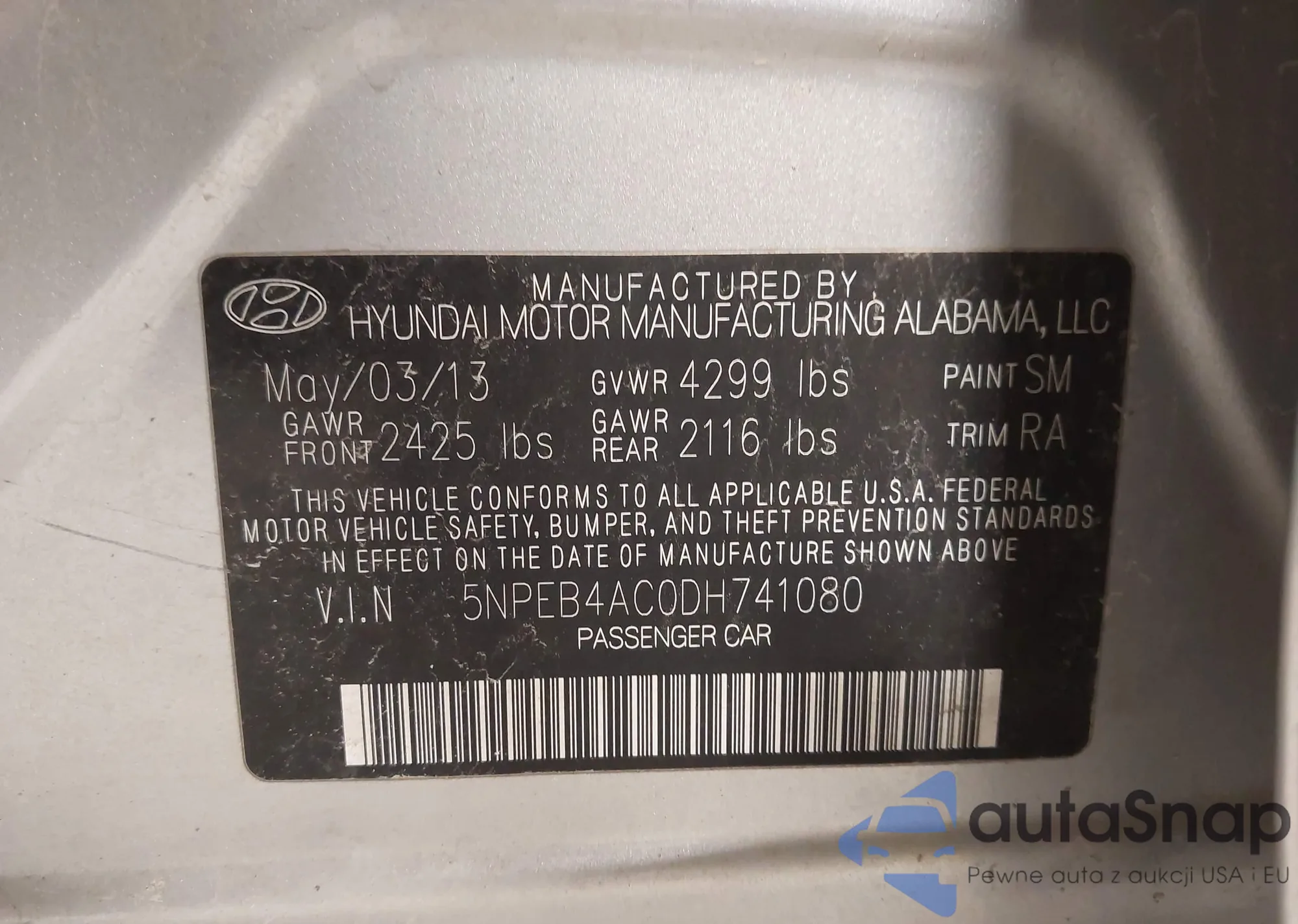 • VIN 5NPEB4AC0DH741080