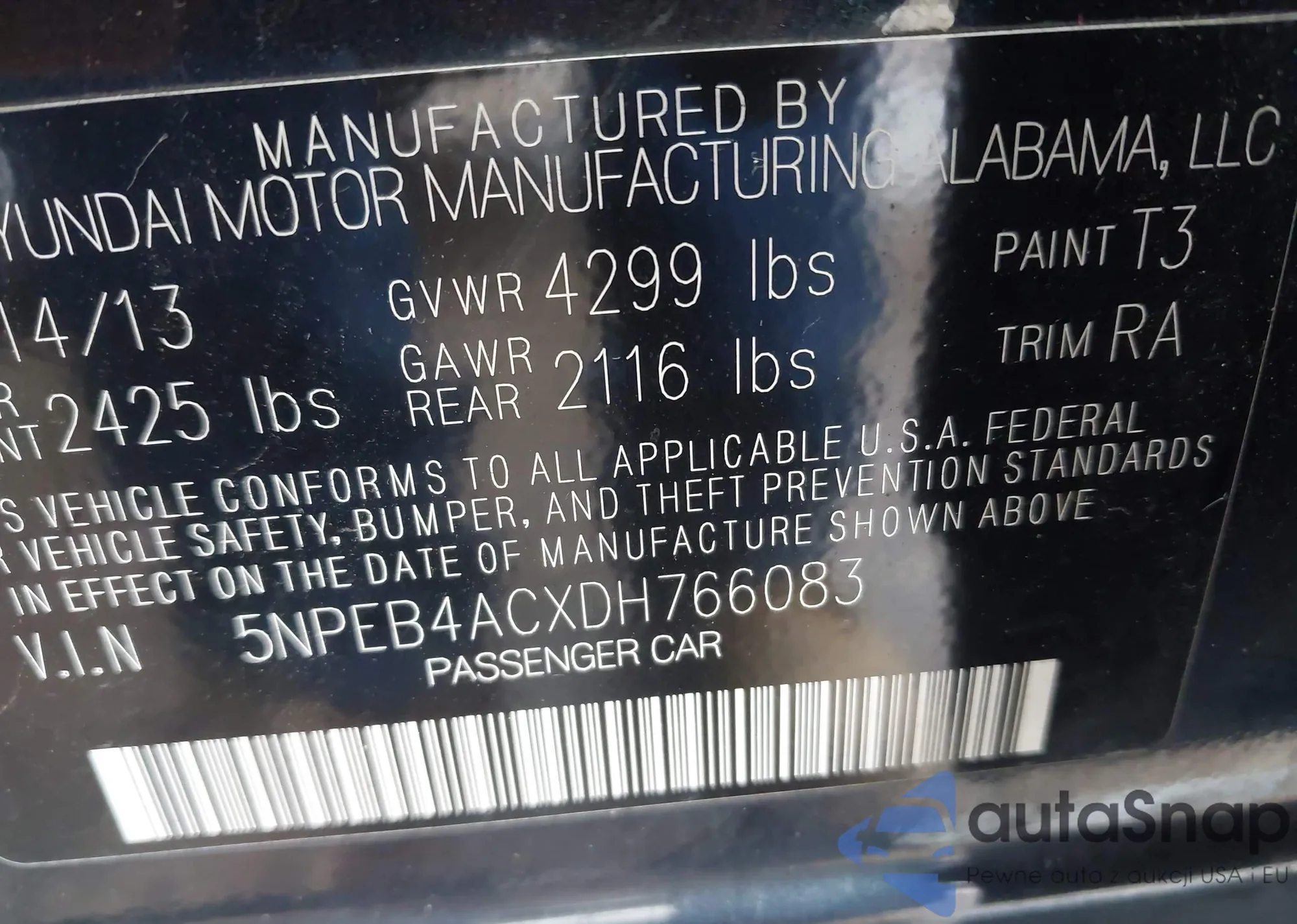 • VIN 5NPEB4ACXDH766083
