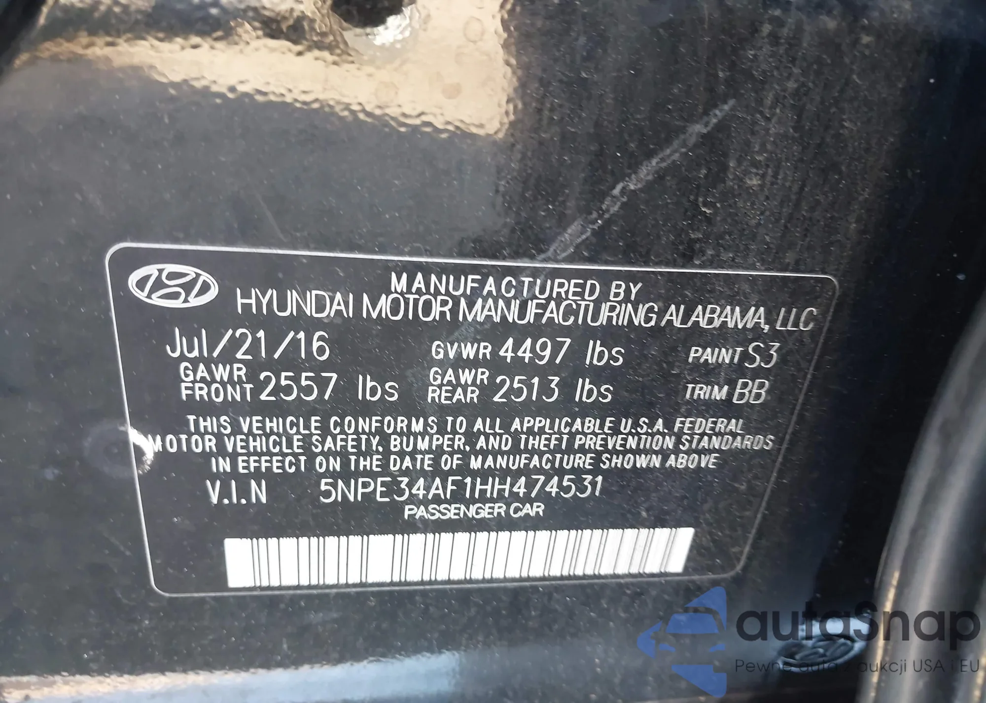 • VIN 5NPE34AF1HH474531