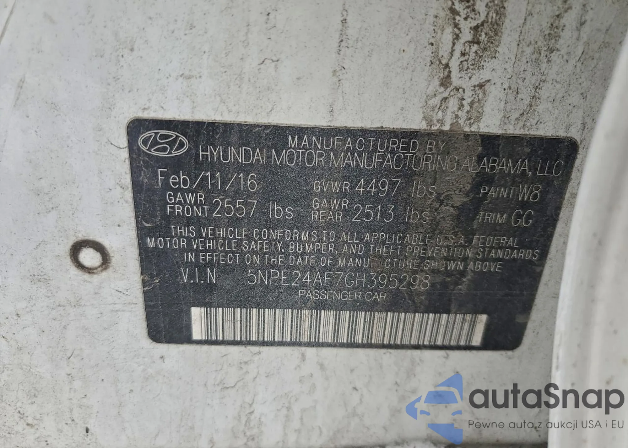 • VIN 5NPE24AF7GH395298