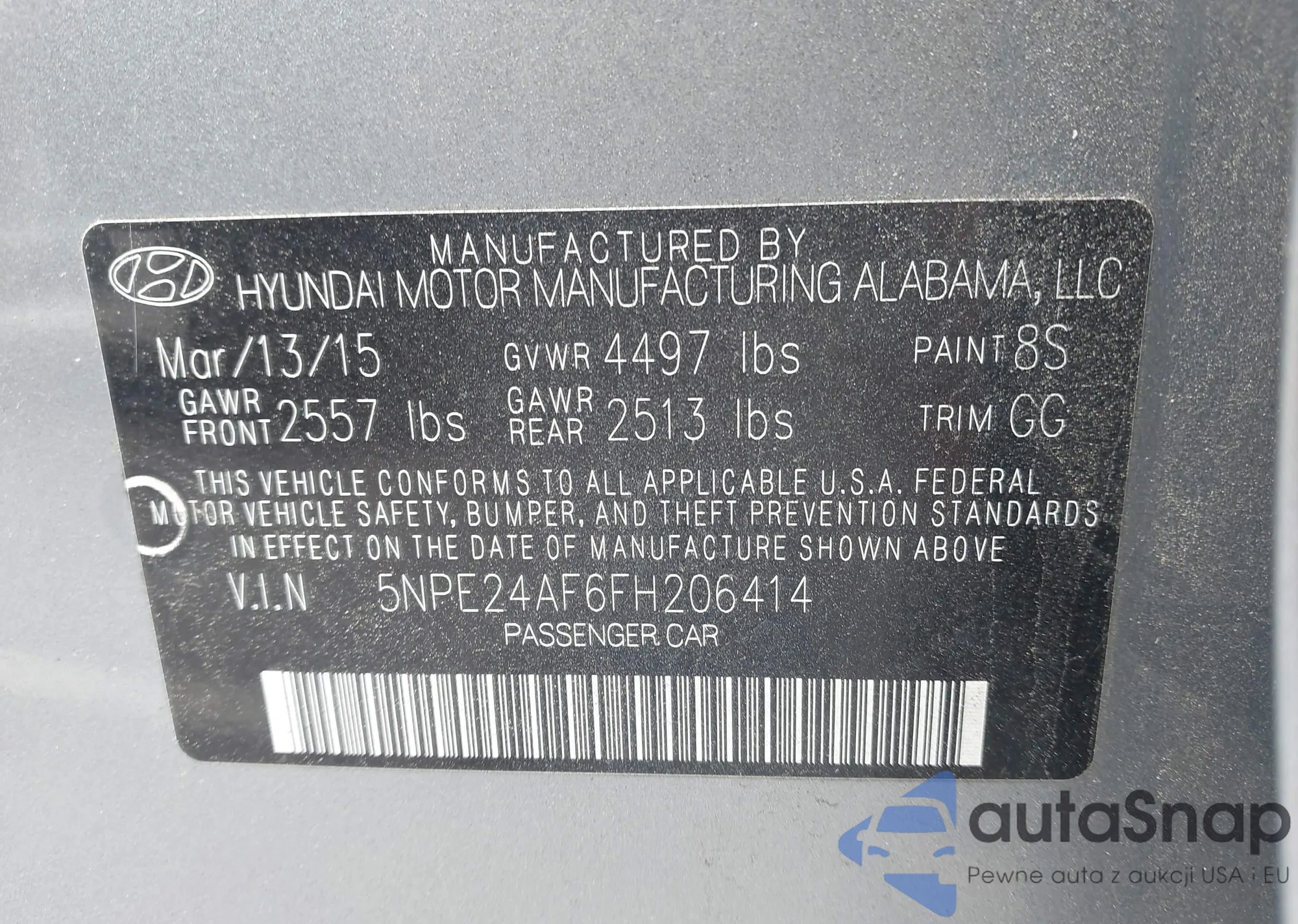 • VIN 5NPE24AF6FH206641