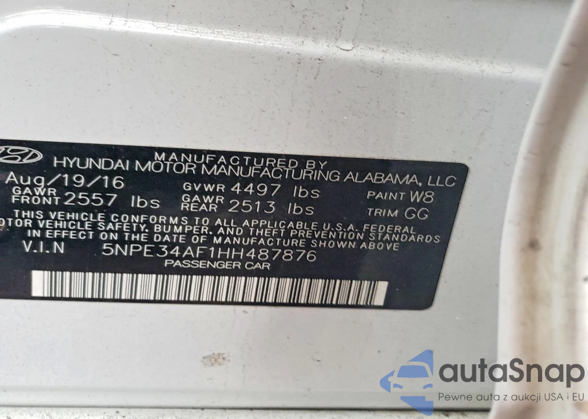 • VIN 5NPE34AF1HH487876