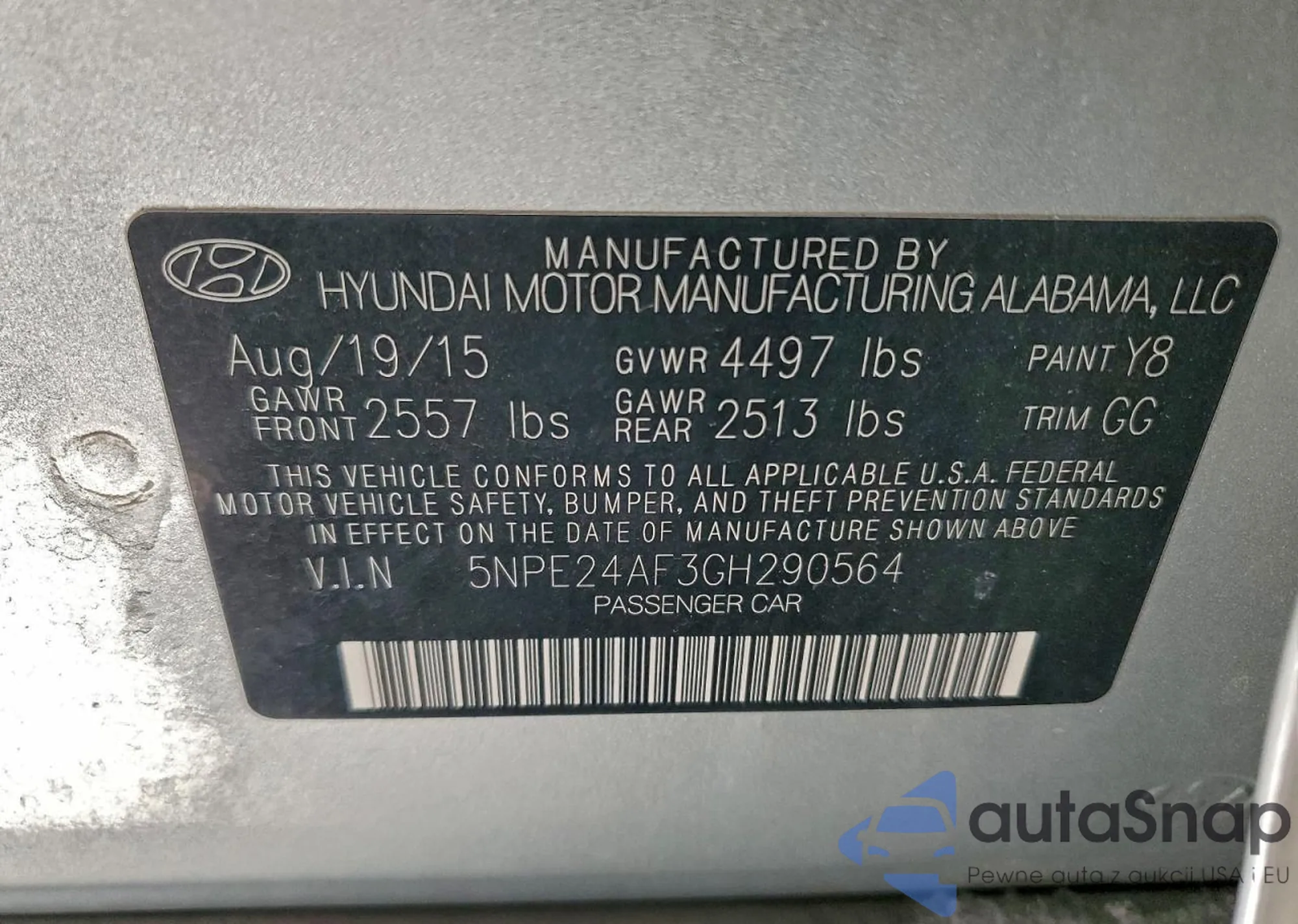 LOT: 97442175 VIN: 5NPE24AF3GH290564