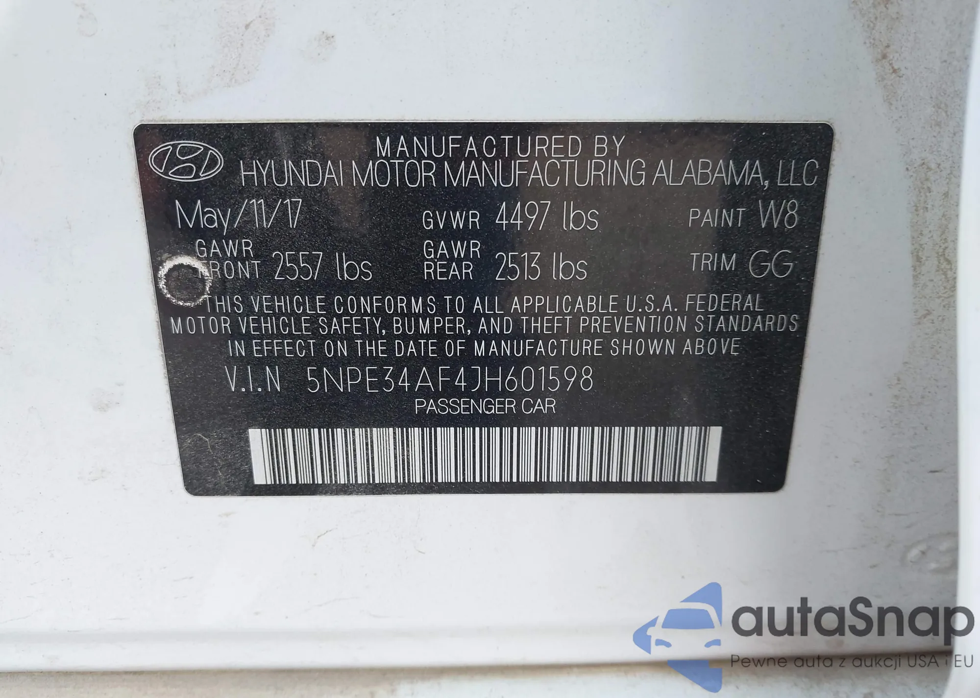 • VIN 5NPE34AF4JH601598