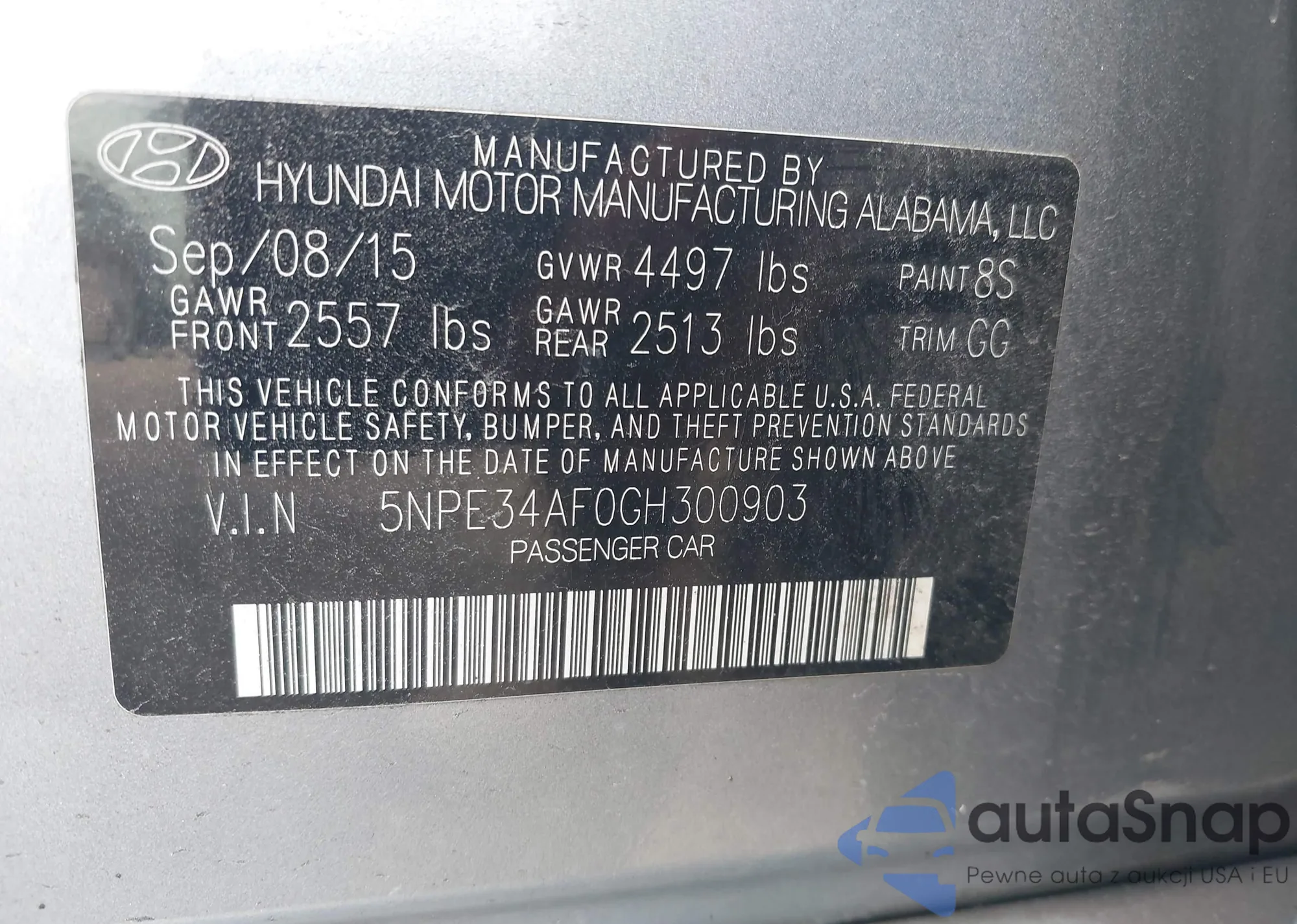 • VIN 5NPE34AF0GH300903