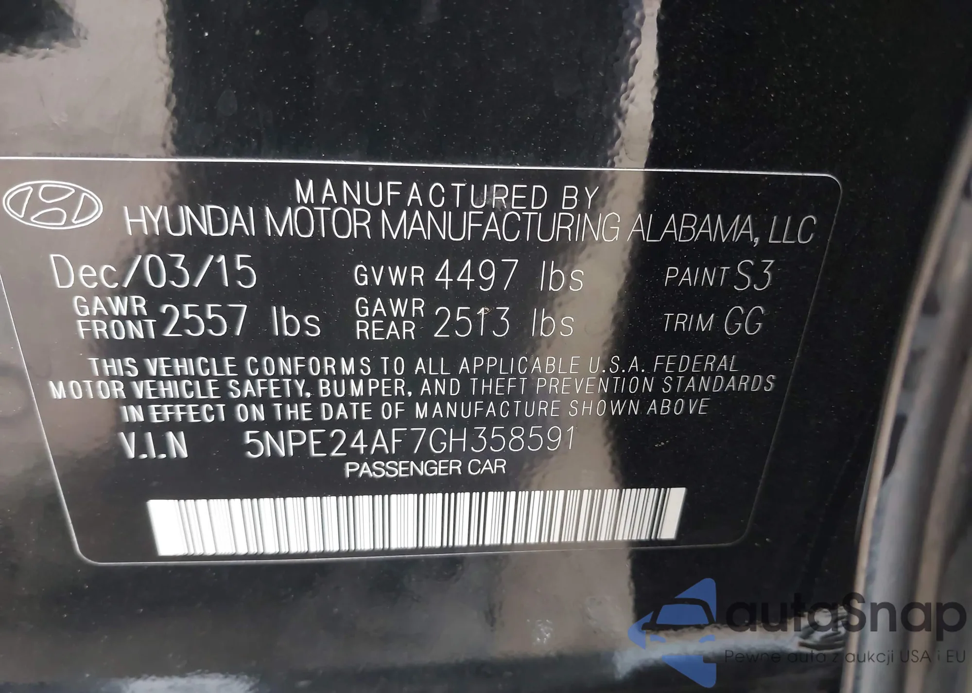 • VIN 5NPE24AF7GH358591