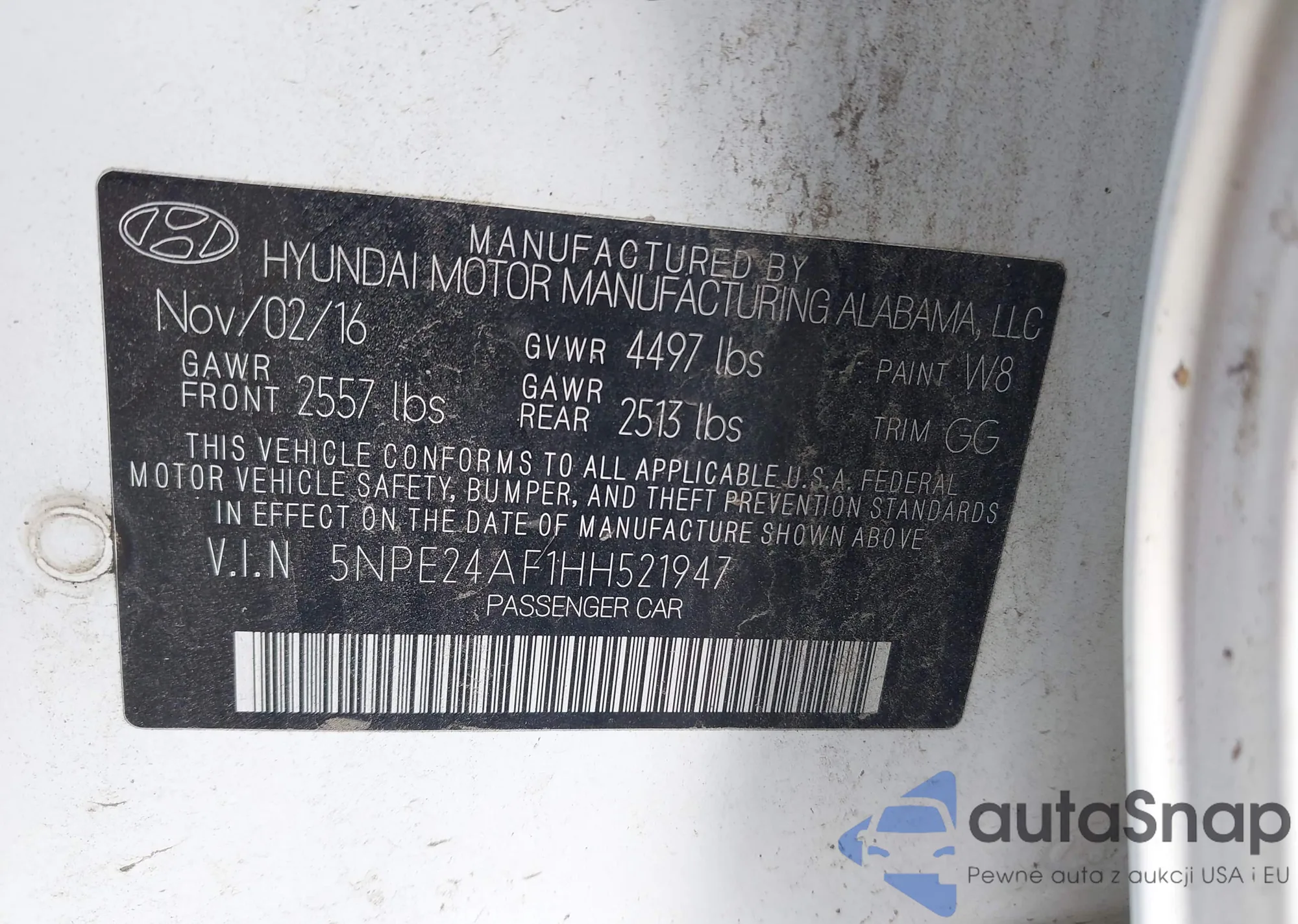 • VIN 5NPE24AF1HH521947