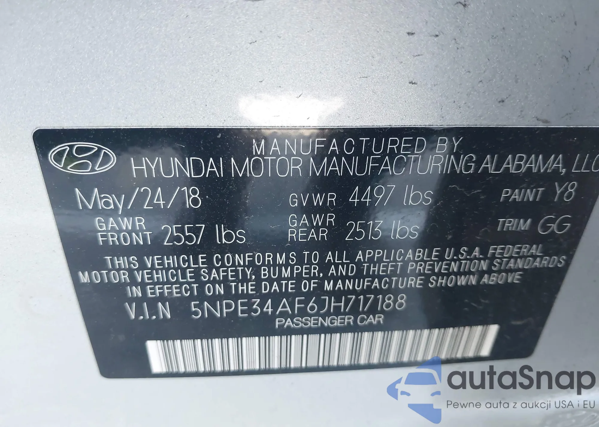 • VIN 5NPE34AF6JH717188