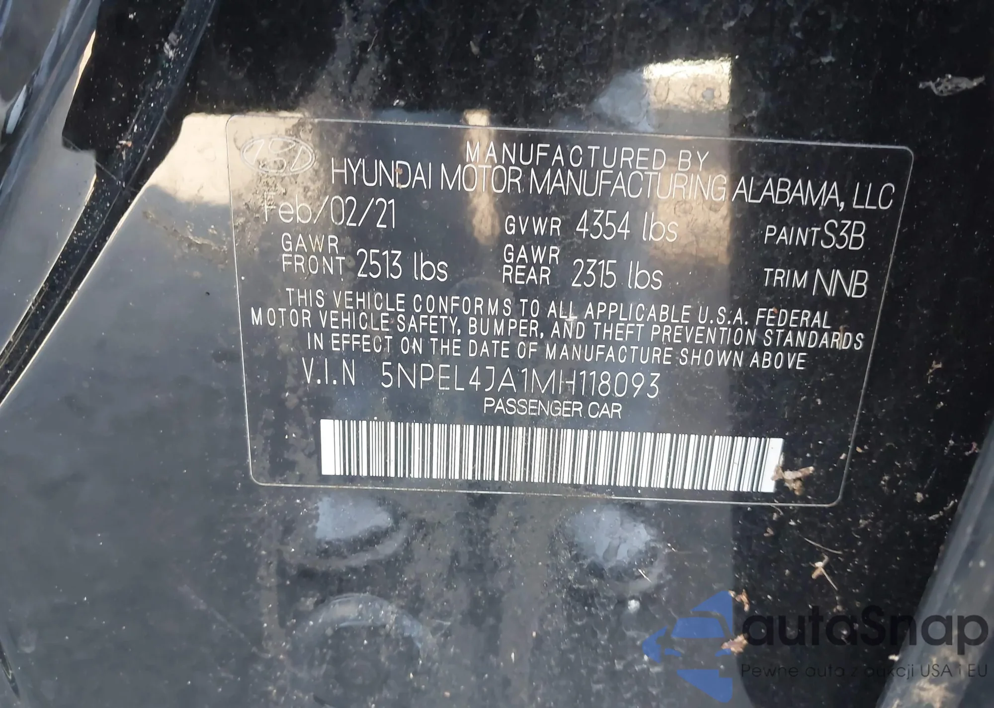 • VIN 5NPEL4JA1MH118093