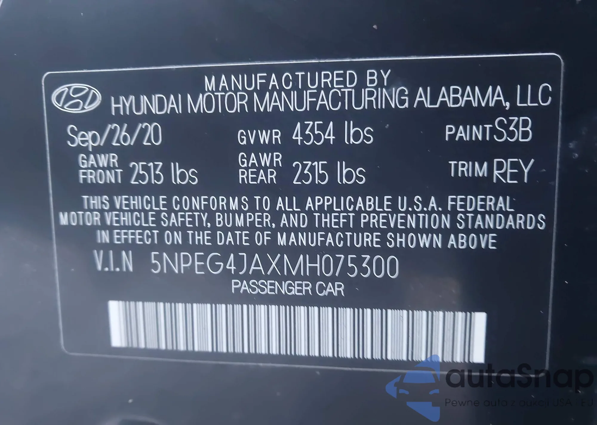 • VIN 5NPEG4JAXMH075300