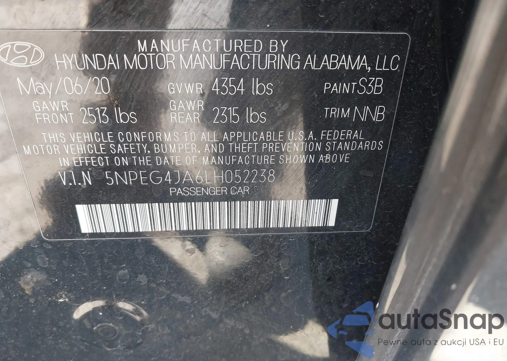 • VIN 5NPEG4JA6LH052238