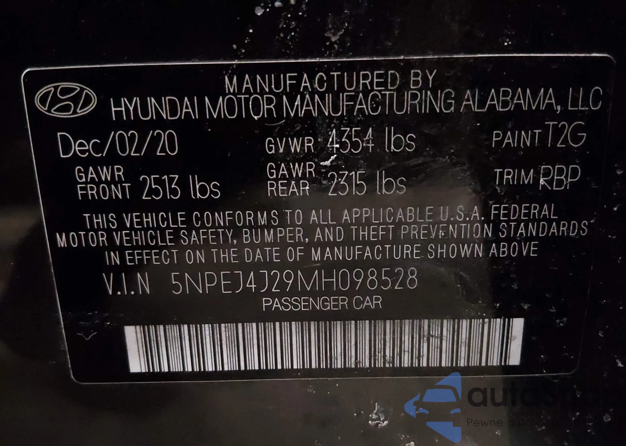 LOT: 44121154 VIN: 5NPEH4J22LH026077