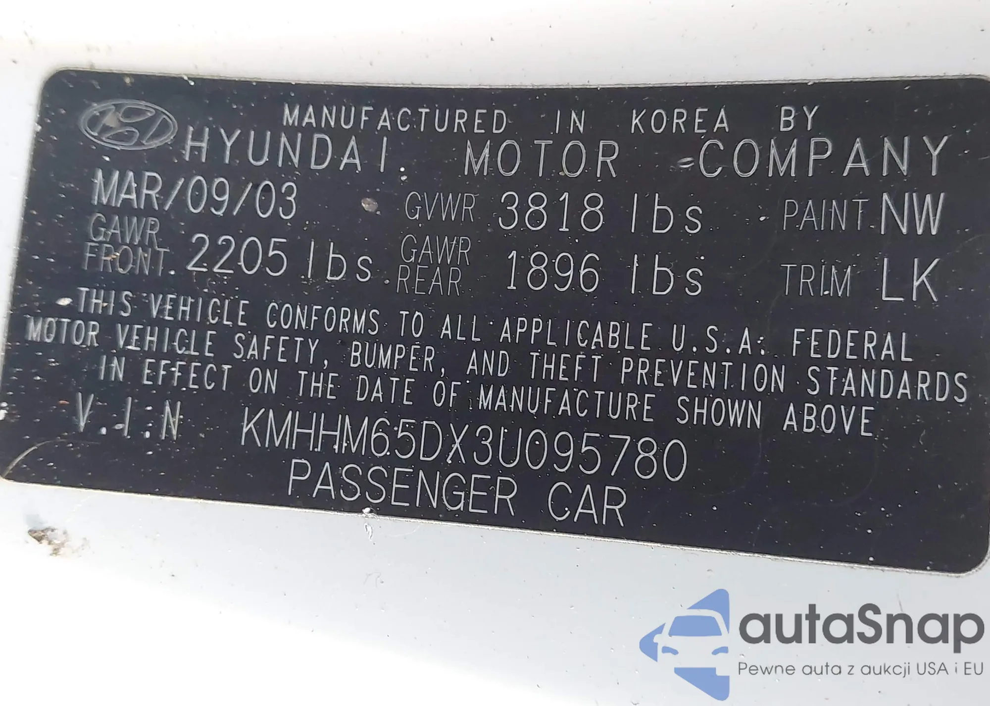 • VIN KMHHM65DX3U095780